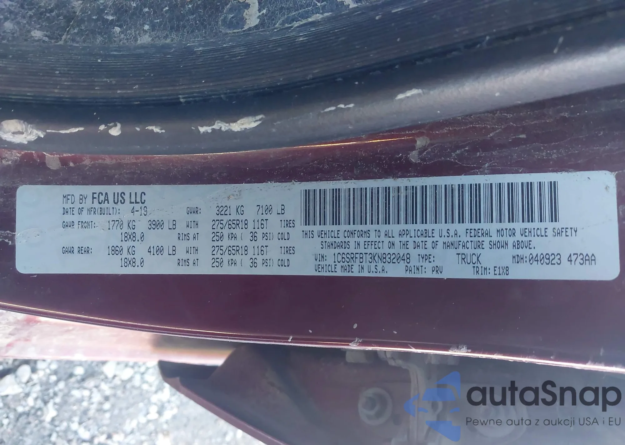 • VIN 1C6SRFBT3KN832048