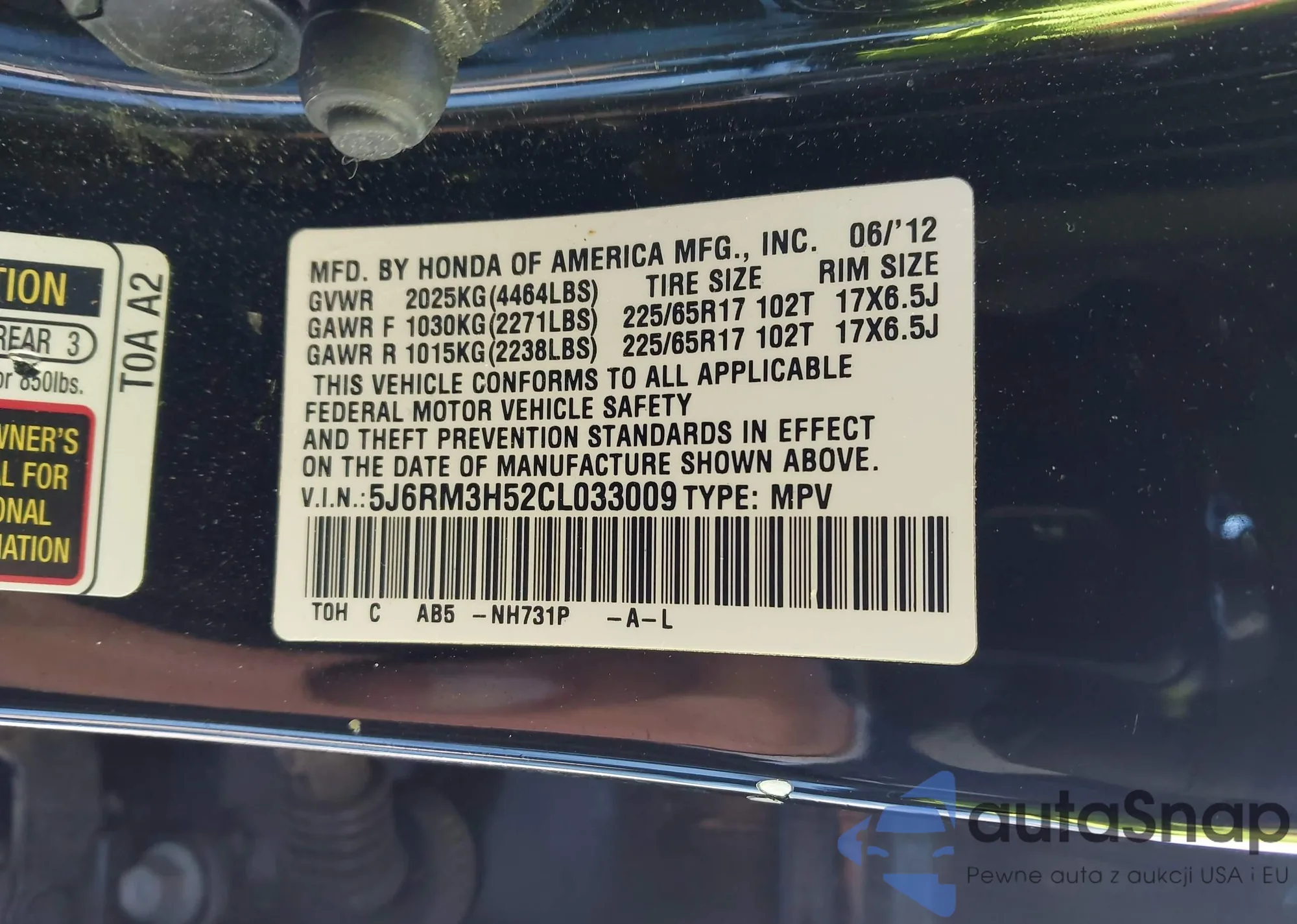 • VIN 5FPYK3F77HB031236