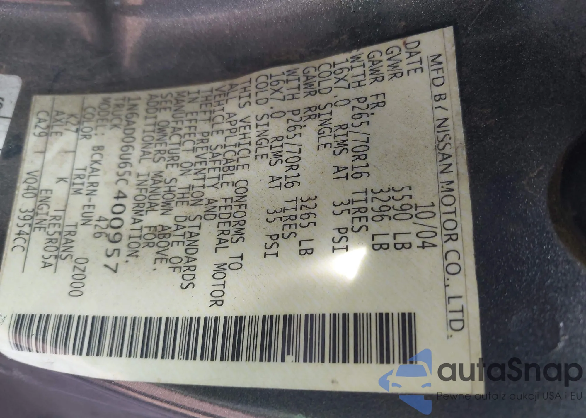 LOT: 43851294 VIN: 1N6AD06U65C400957