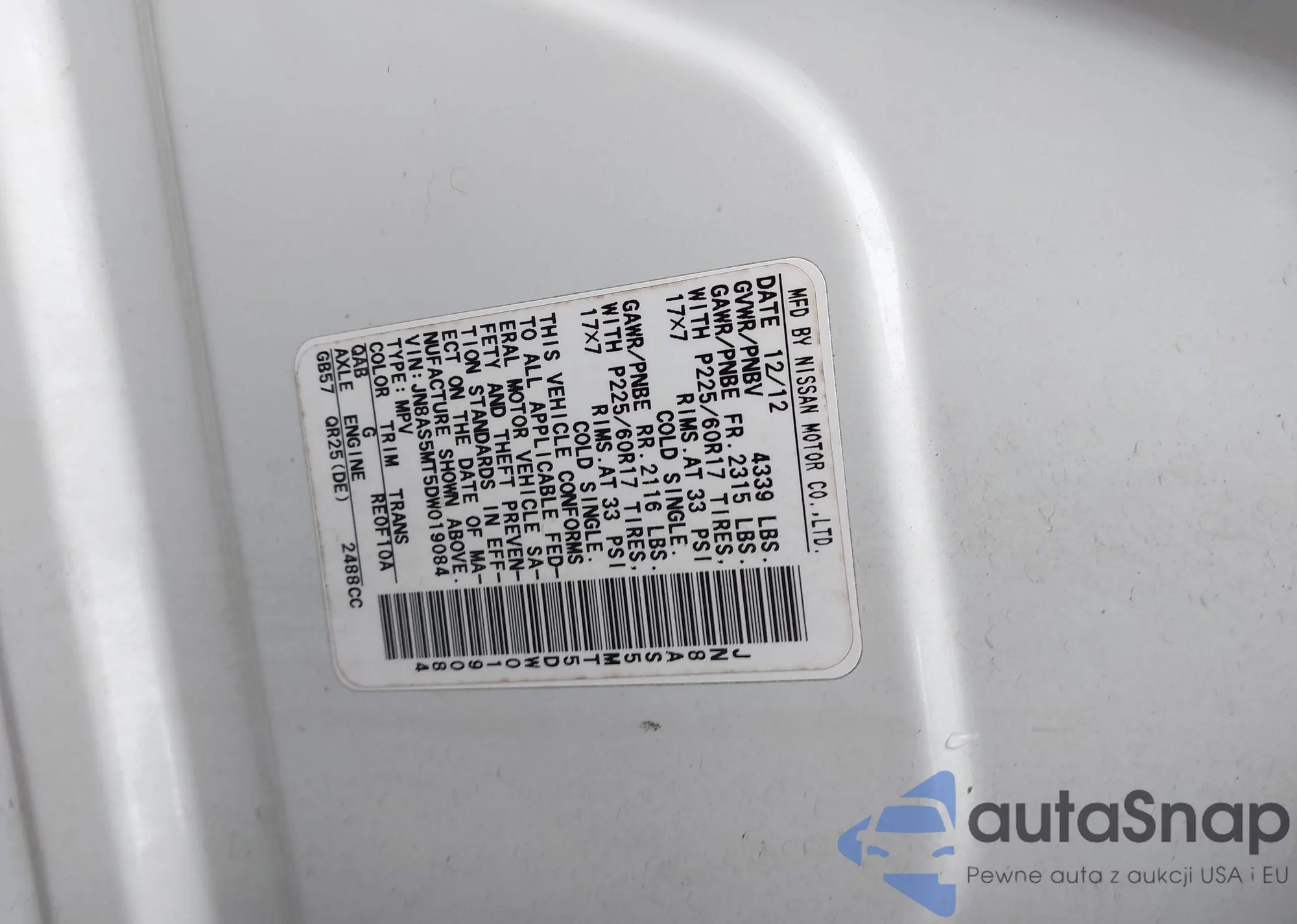 LOT: 43967119 VIN: 5XYKUDA21DG363850