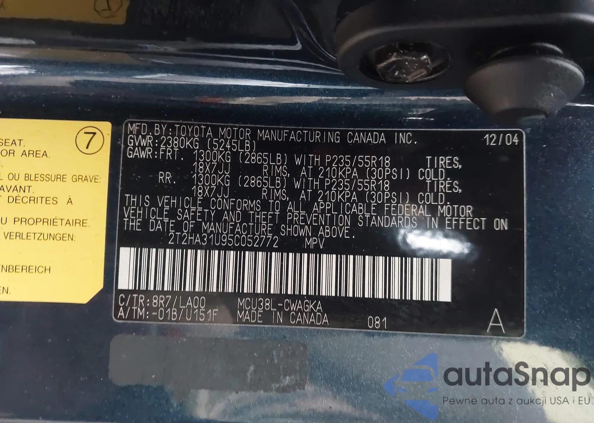 • VIN 1VWSA7A37MC001087
