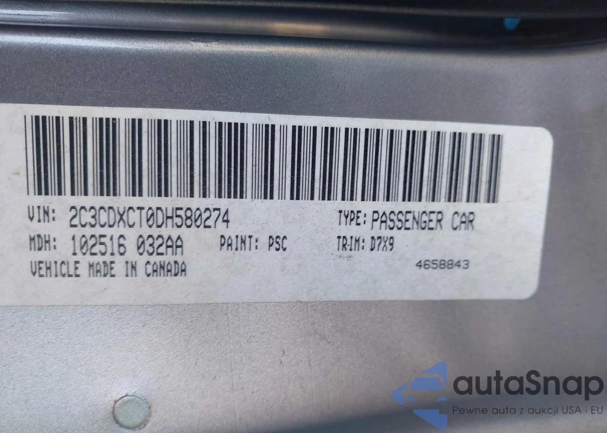 • VIN 2C3CDXCT0DH580274