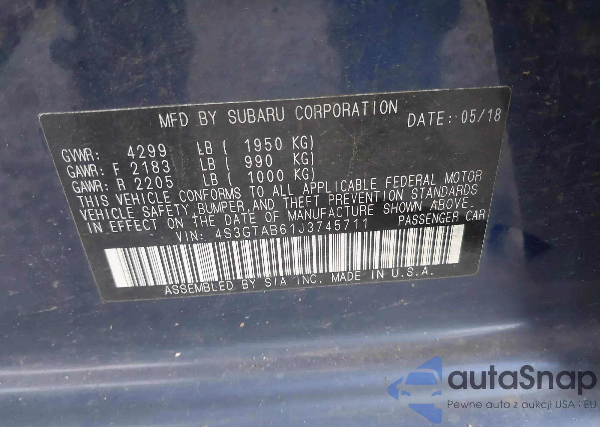 • VIN 4S3GTAB61J3745711