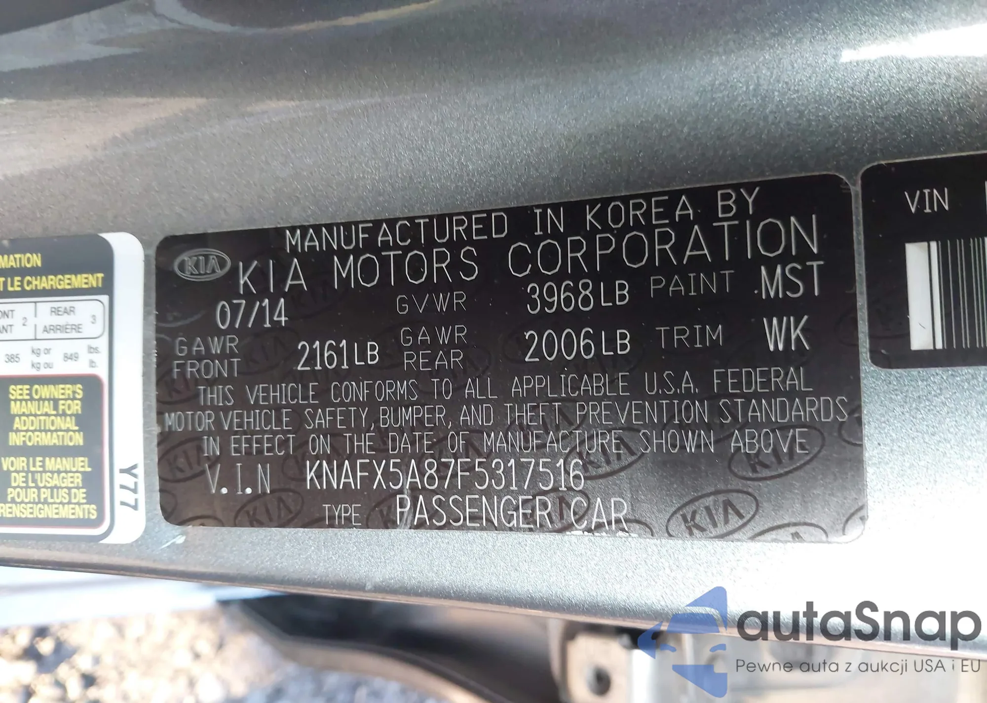 • VIN KNAFX5A87F5317516