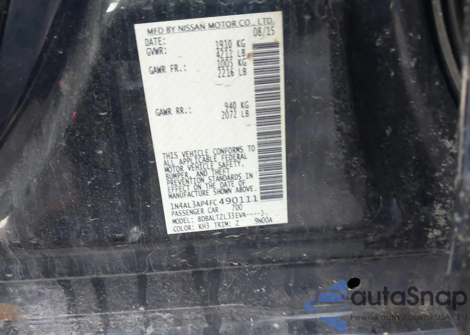 • VIN 1N4AL3AP6FN310616