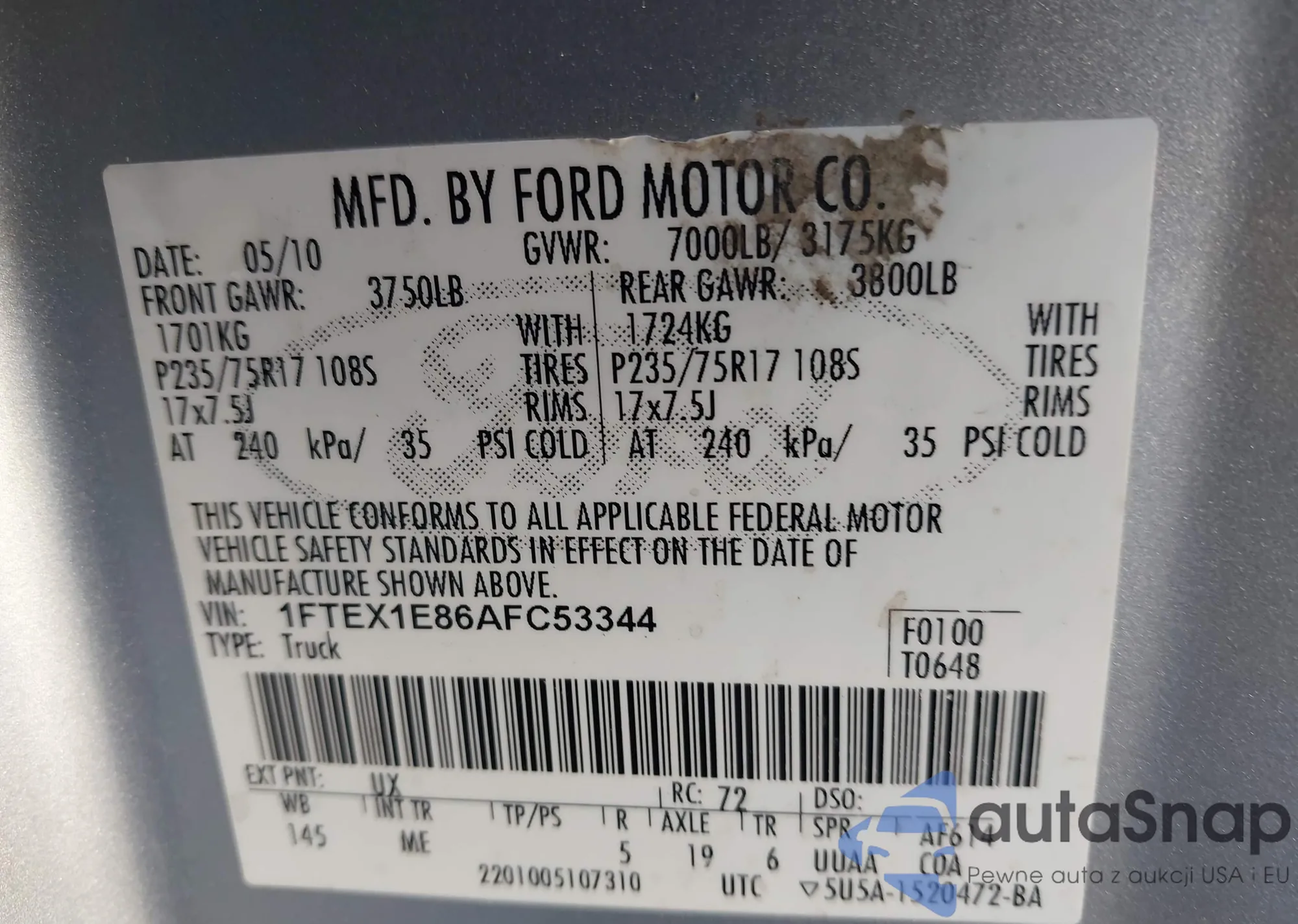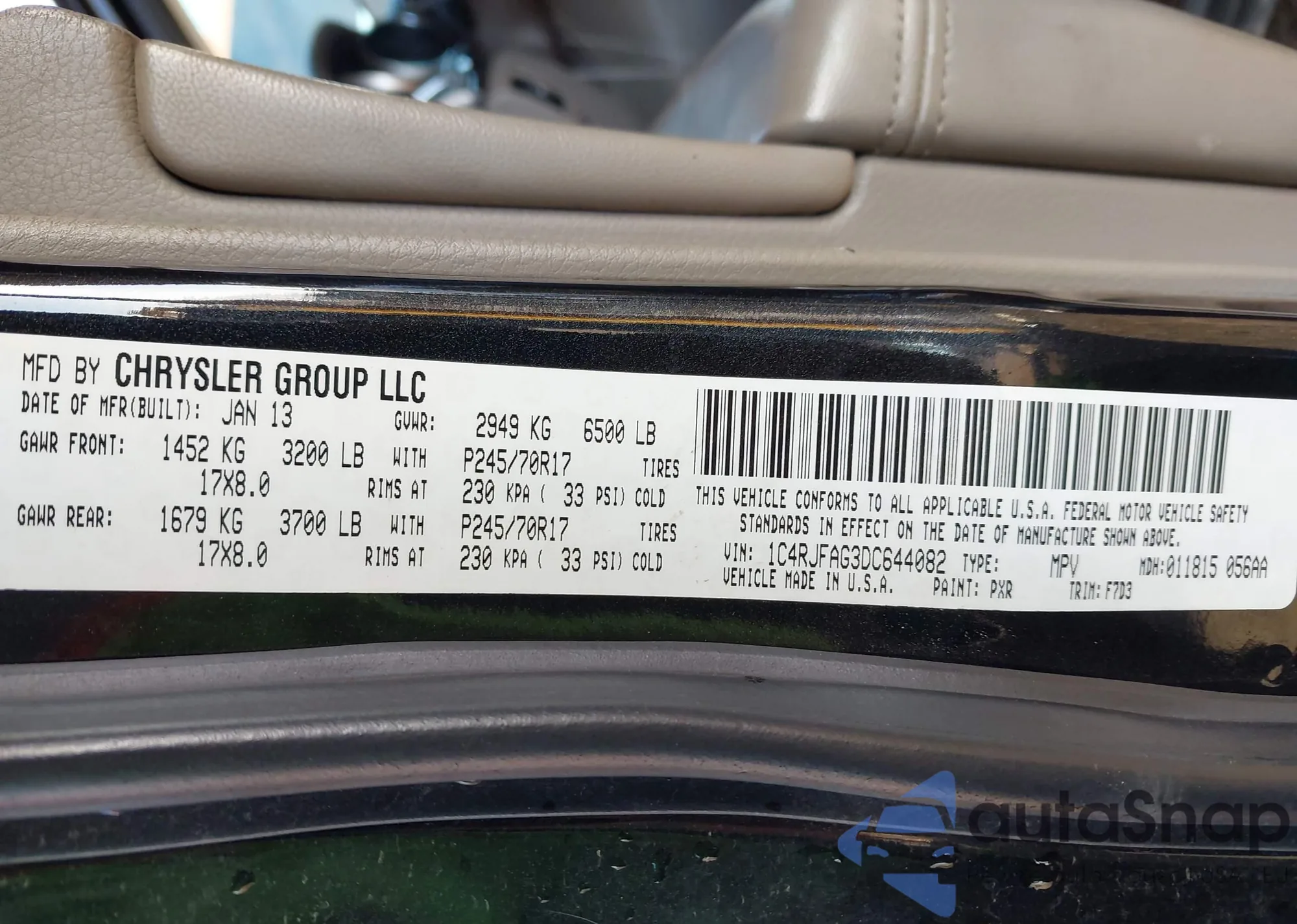 • VIN 3FADP4AJ9JM141794