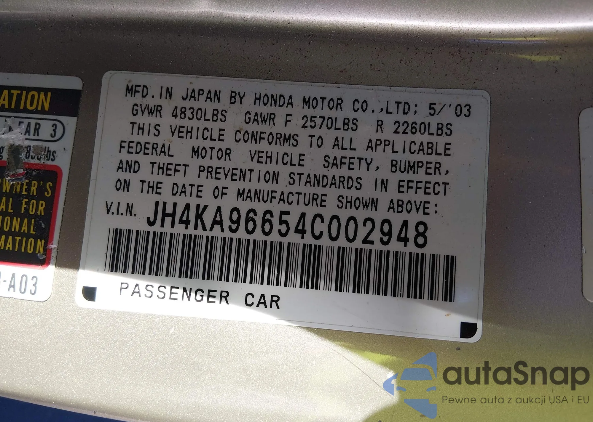 • VIN JH4KA96654C002948