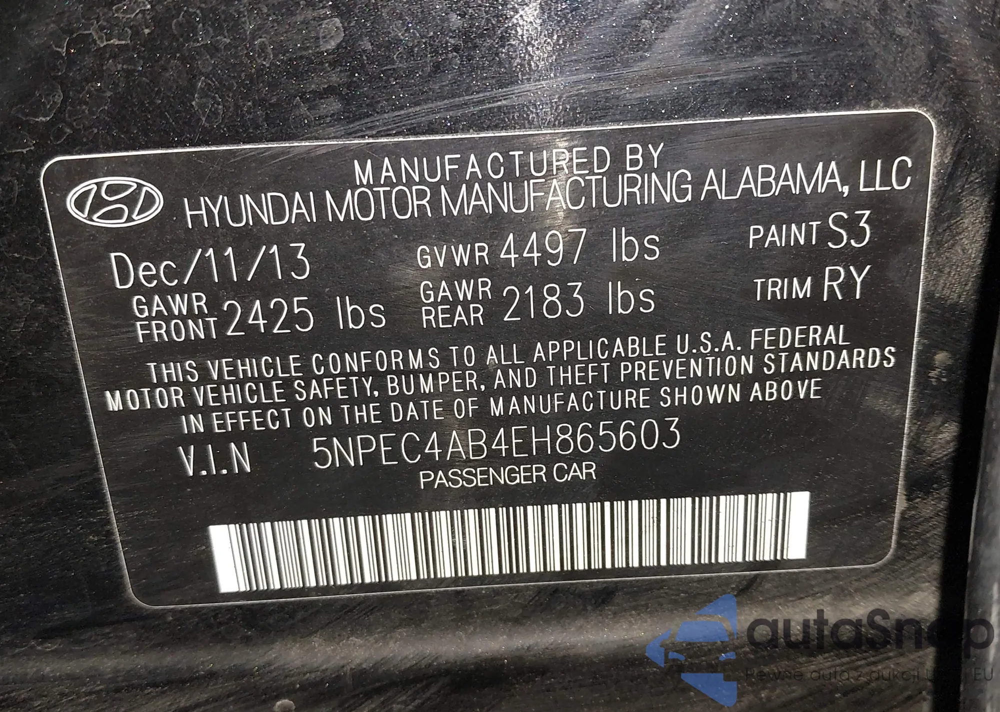 • VIN 5NPEC4AB4EH865603