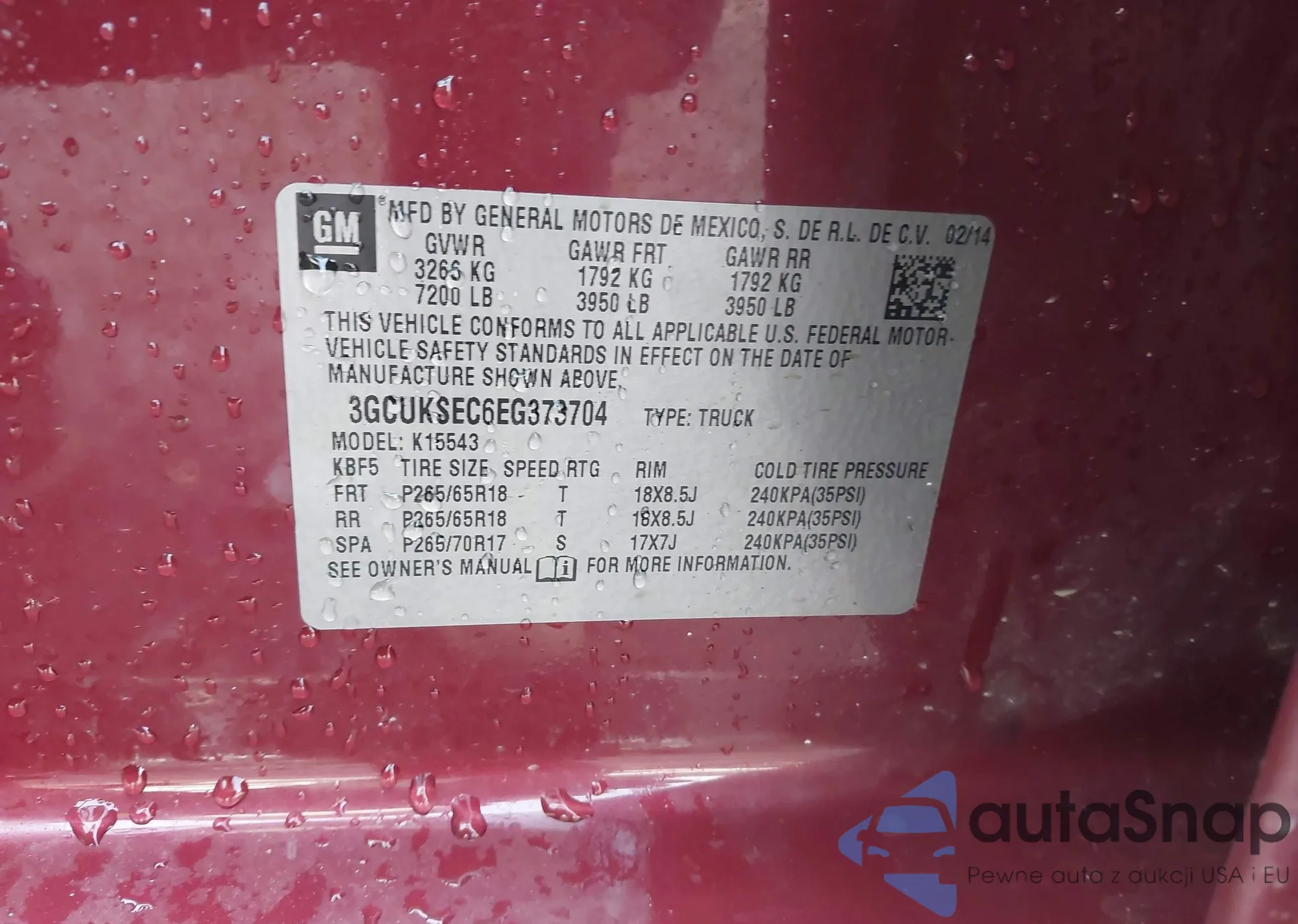 • VIN 3GCUKSEC6EG373704