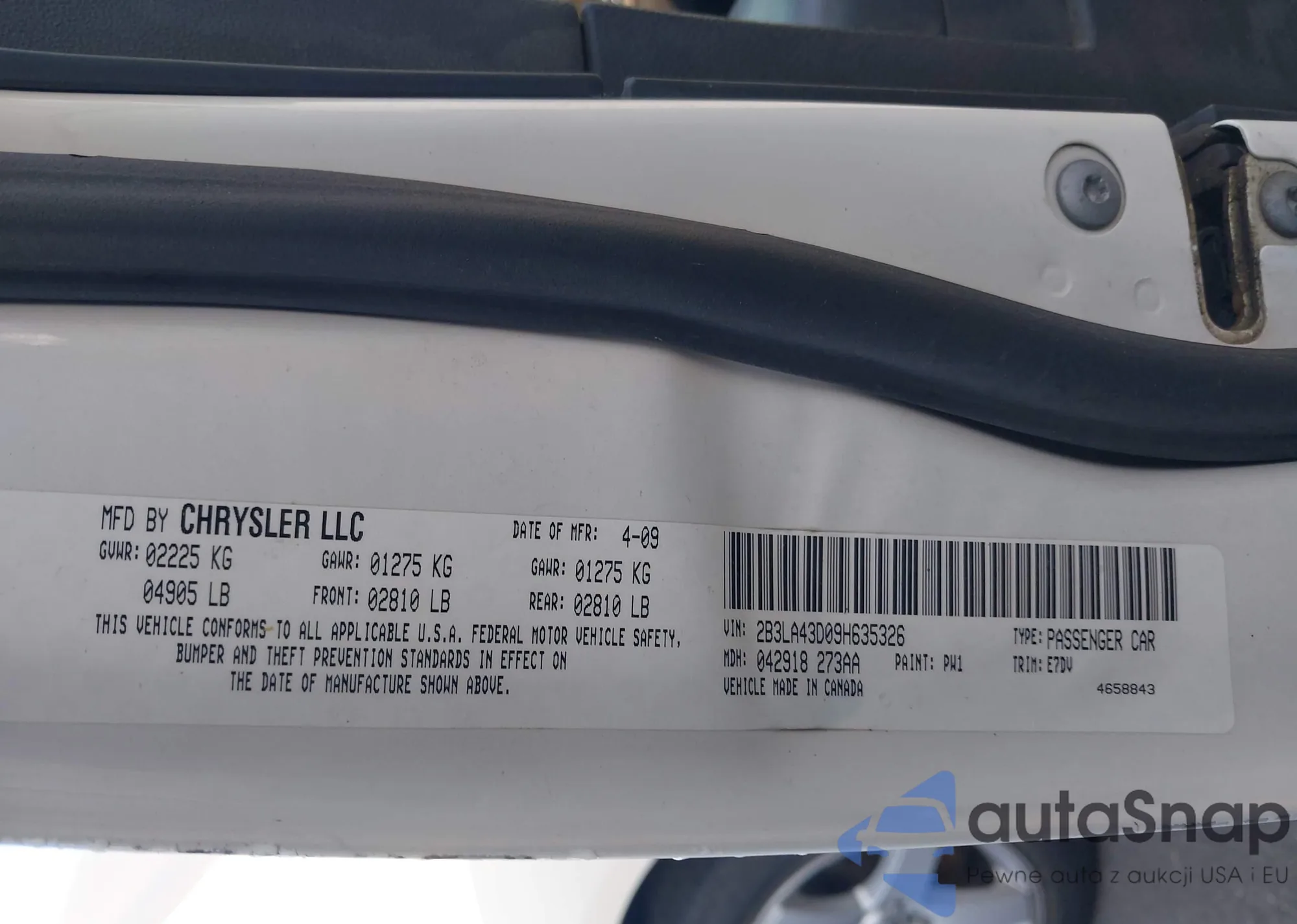 • VIN 2B3LA43D09H635326