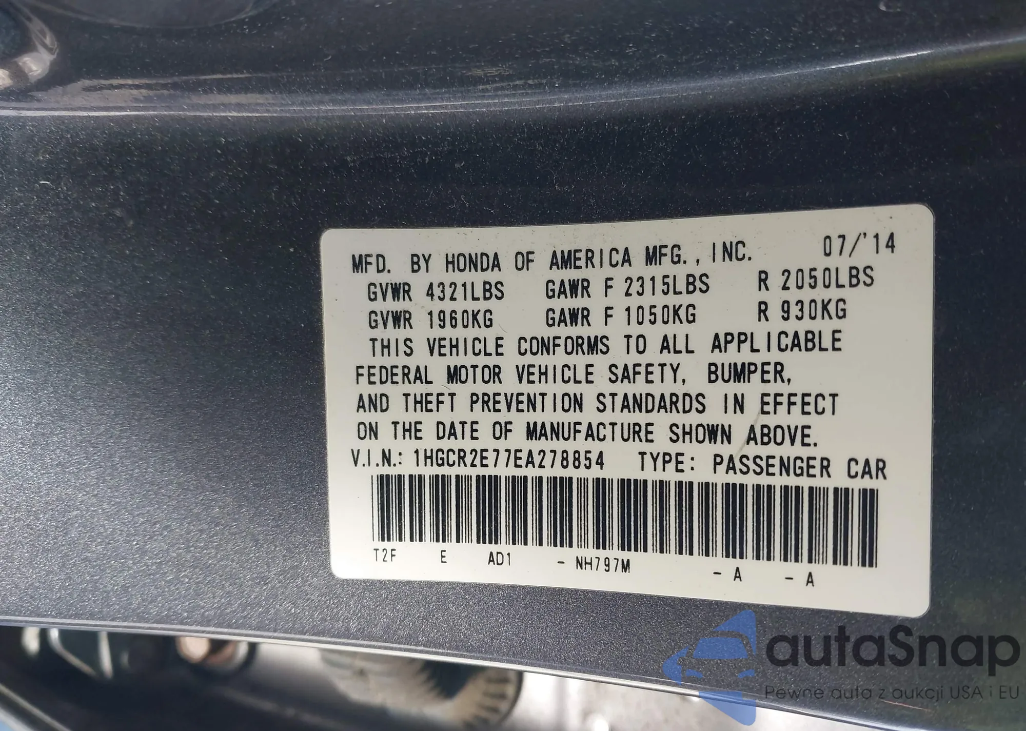 LOT: 44045666 VIN: 1HGCM56757A131806