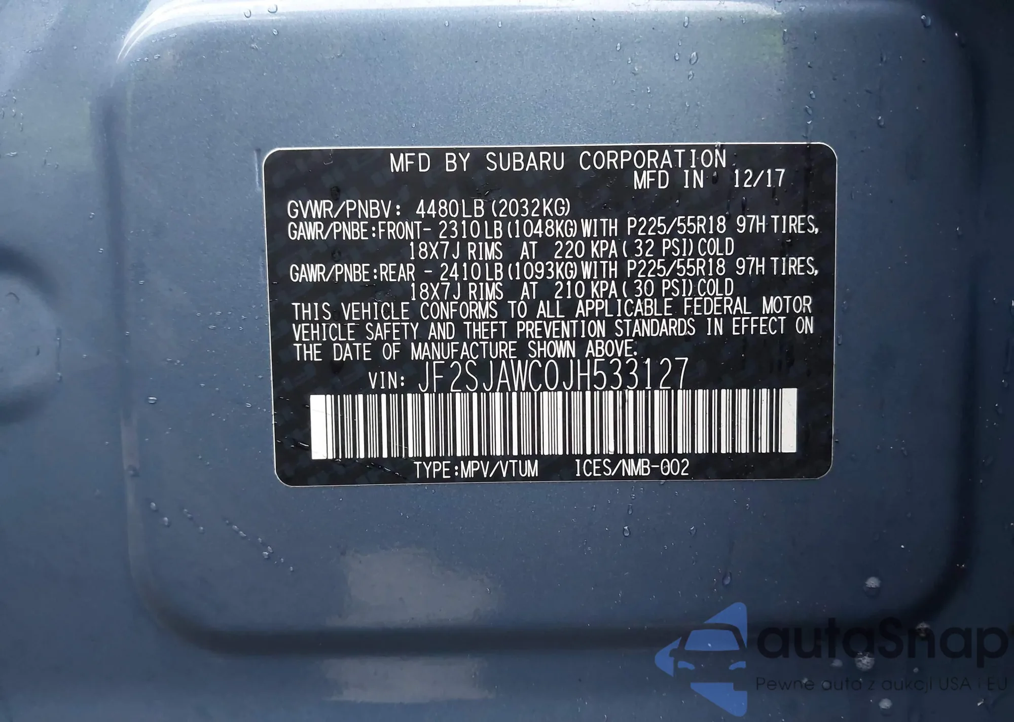 LOT: 43869901 VIN: 2HGFC2F79JH592711