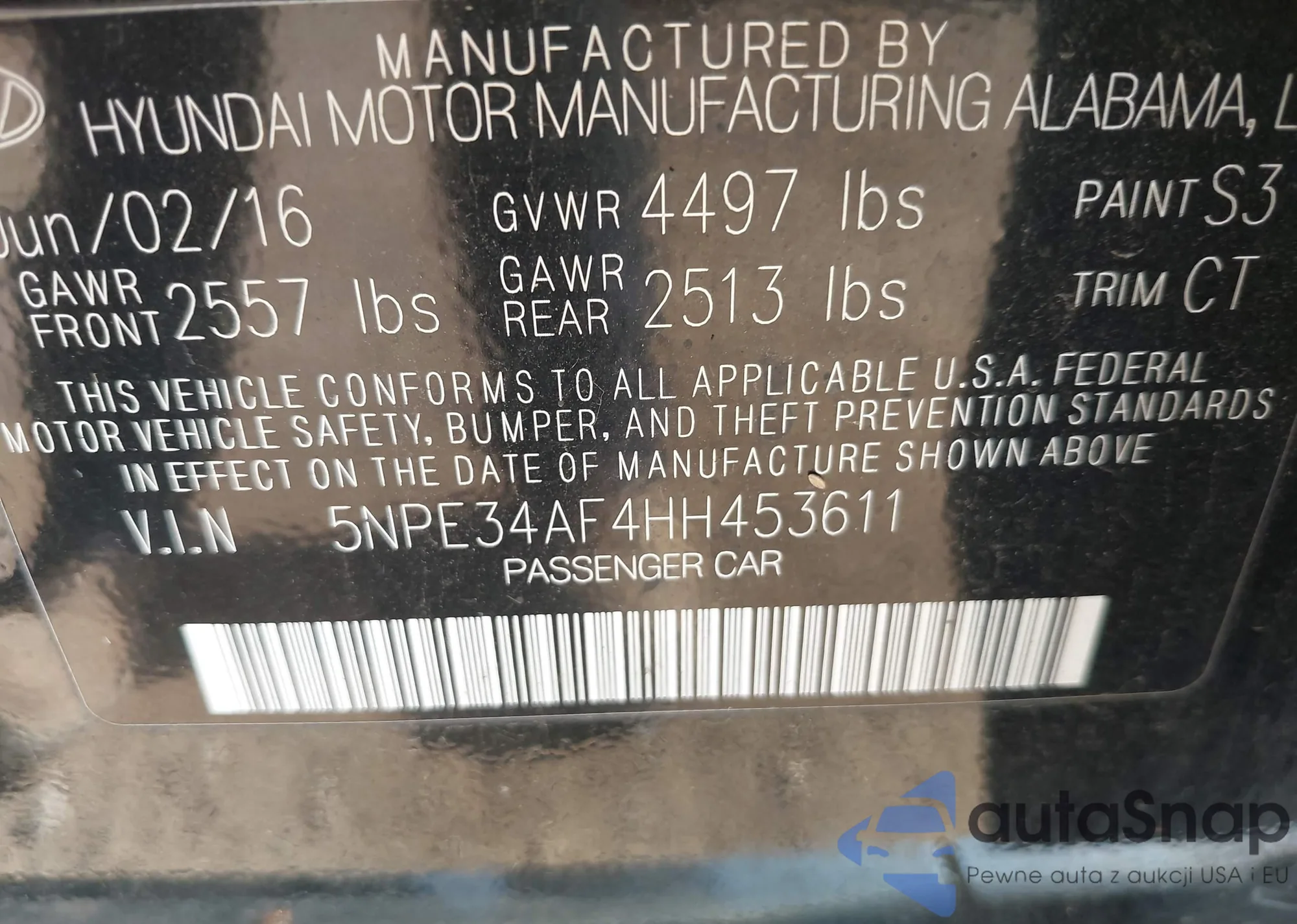 • VIN 5NPE34AF4HH453611