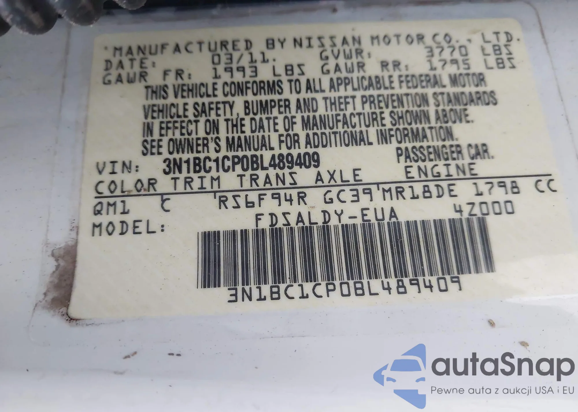 • VIN 3N1BC1CP0BL489409