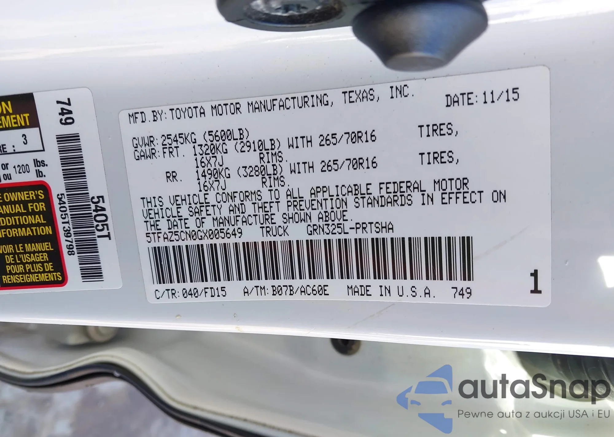 LOT: 43636142 VIN: JTEZU5JR9F5085966