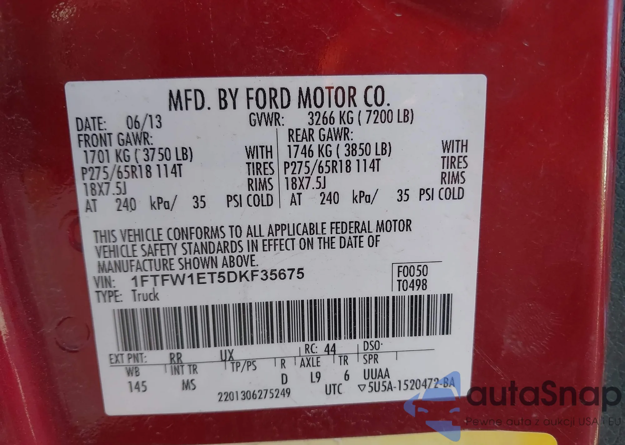 • VIN 1FTFW1ET5DKF35675