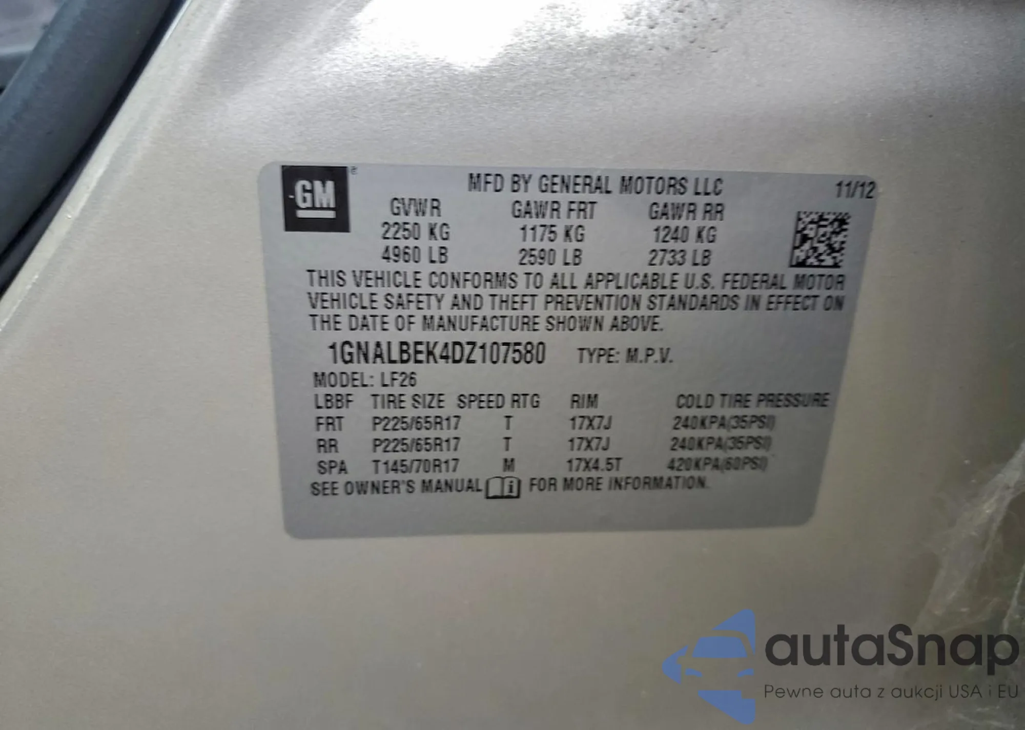 LOT: 92914535 VIN: JF1GJAD67DH013650