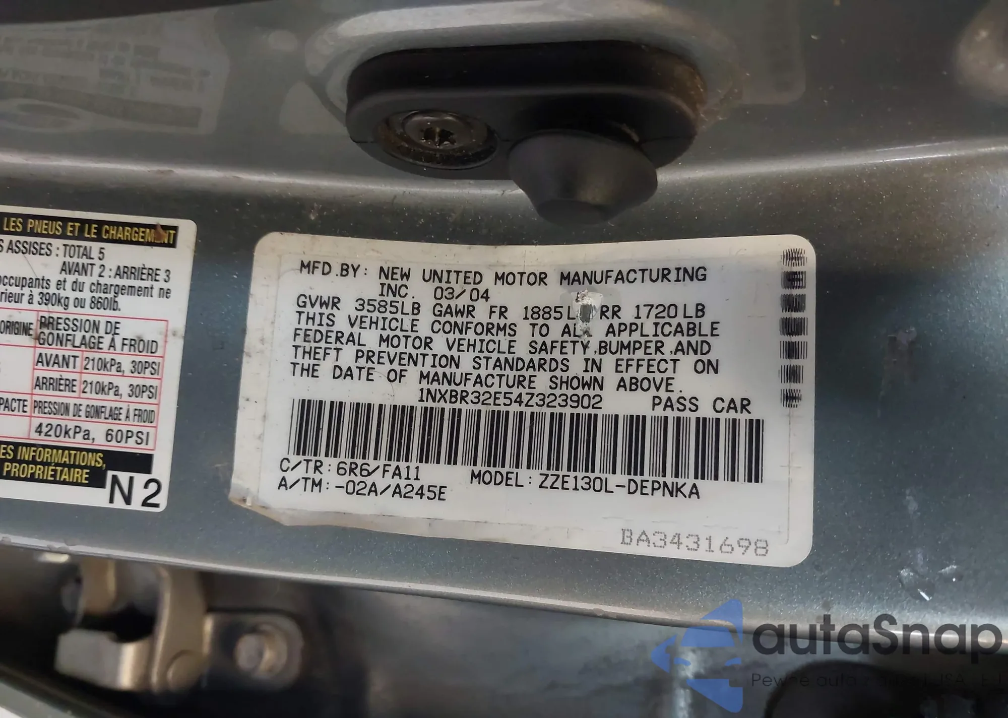 • VIN 4S3BMBB68C3033096