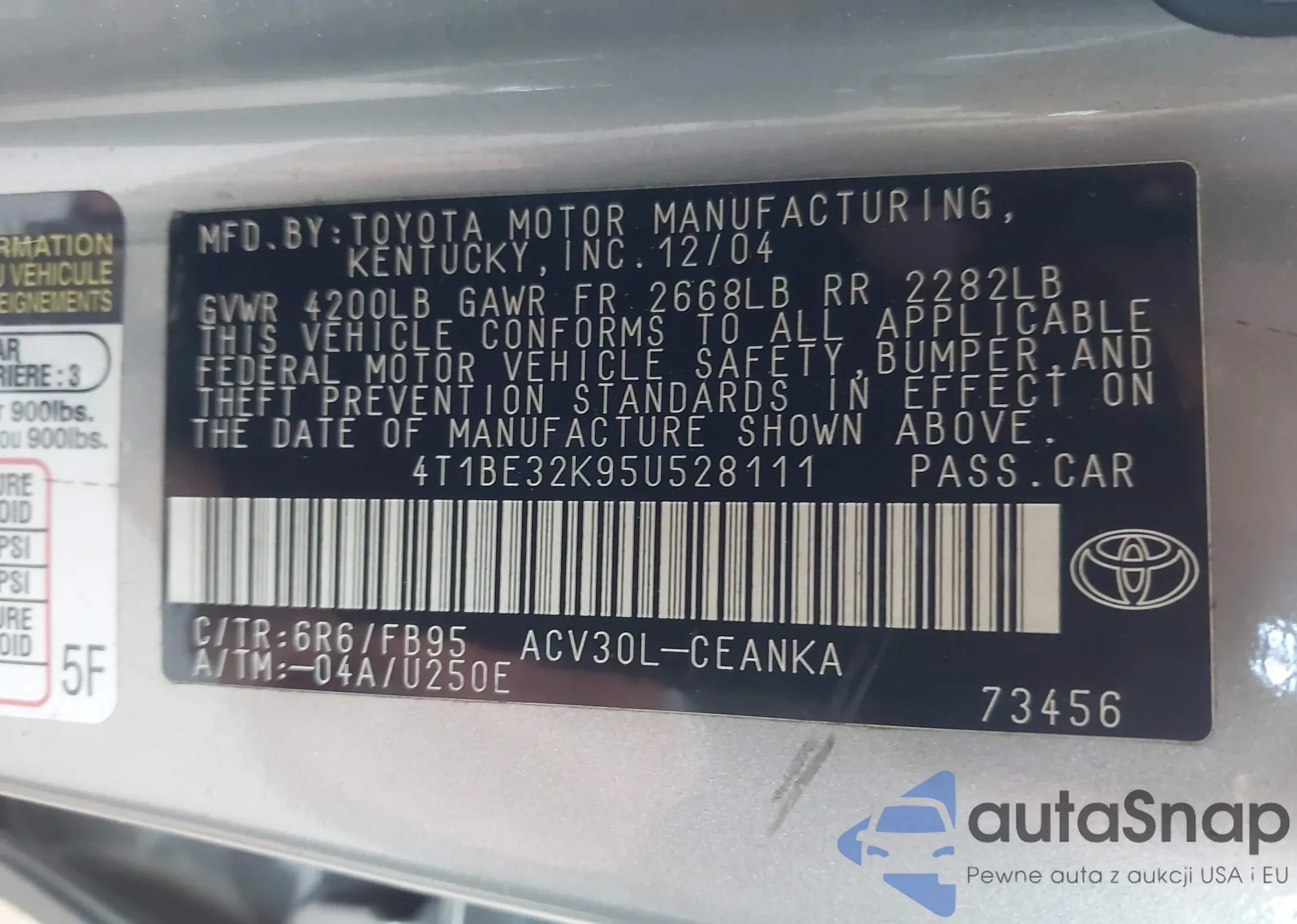 • VIN 4T1BE32K95U528111