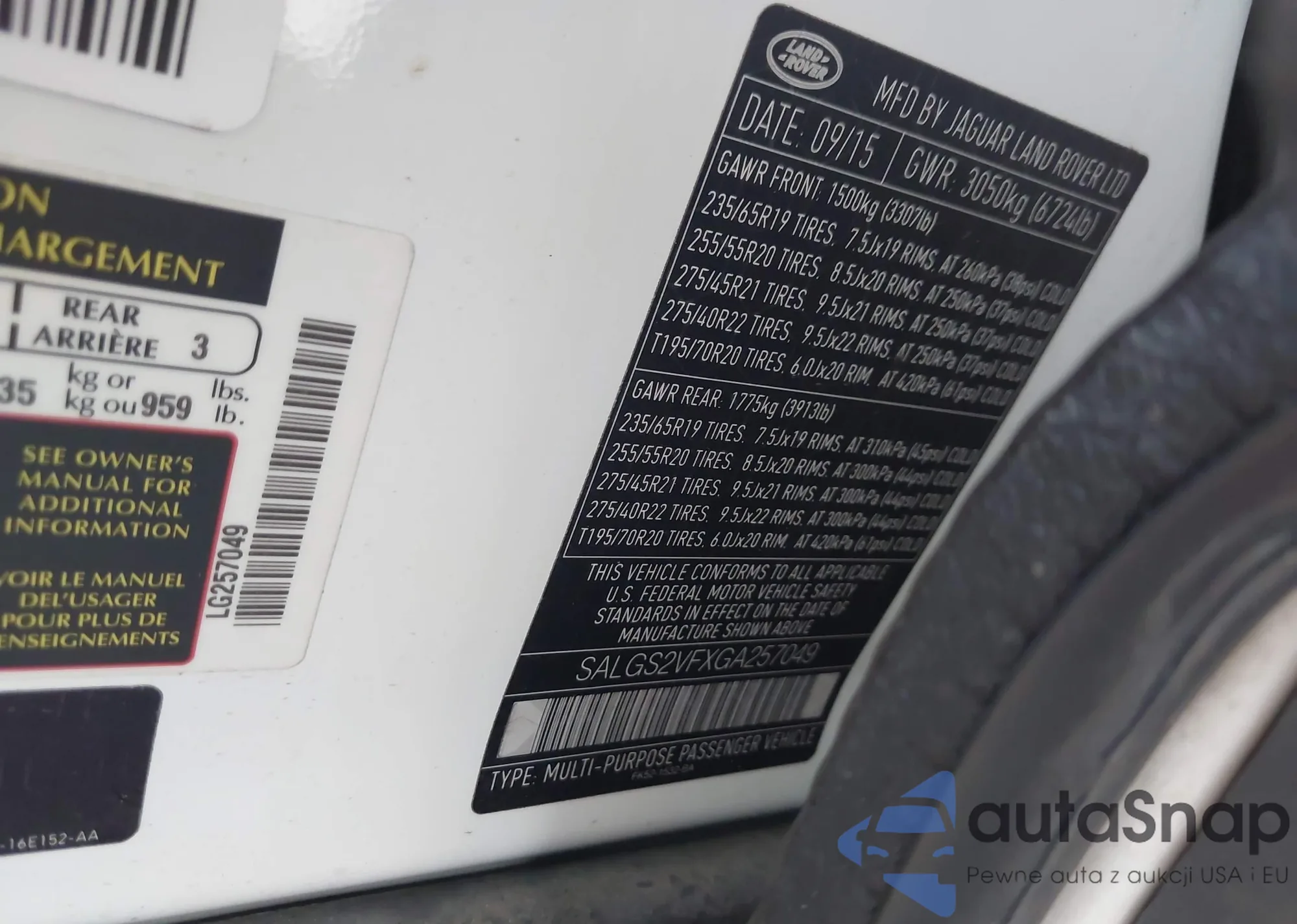 LOT: 43768992 VIN: SALGS2VFXGA257049
