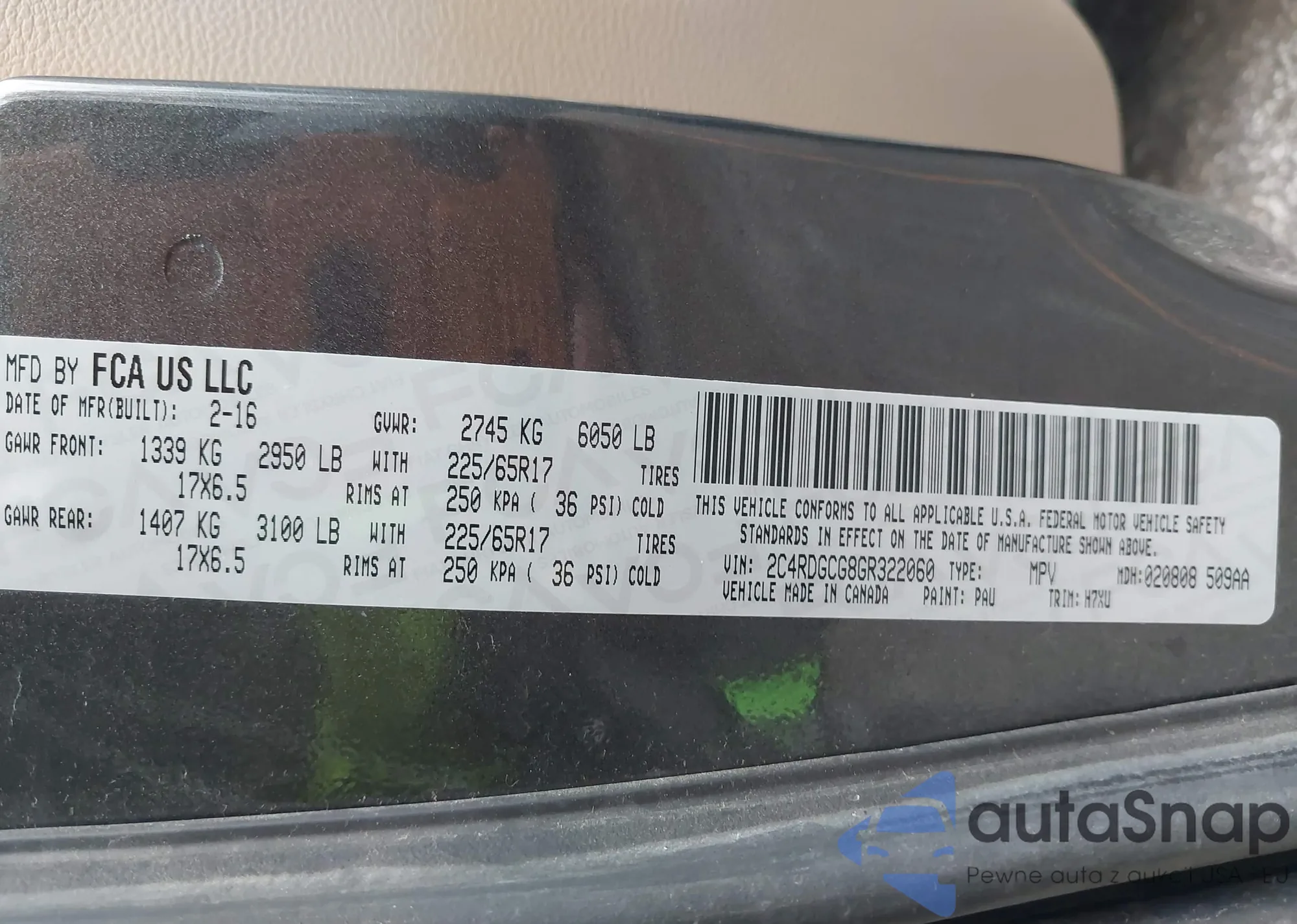 • VIN 2C4RDGCG8GR322060