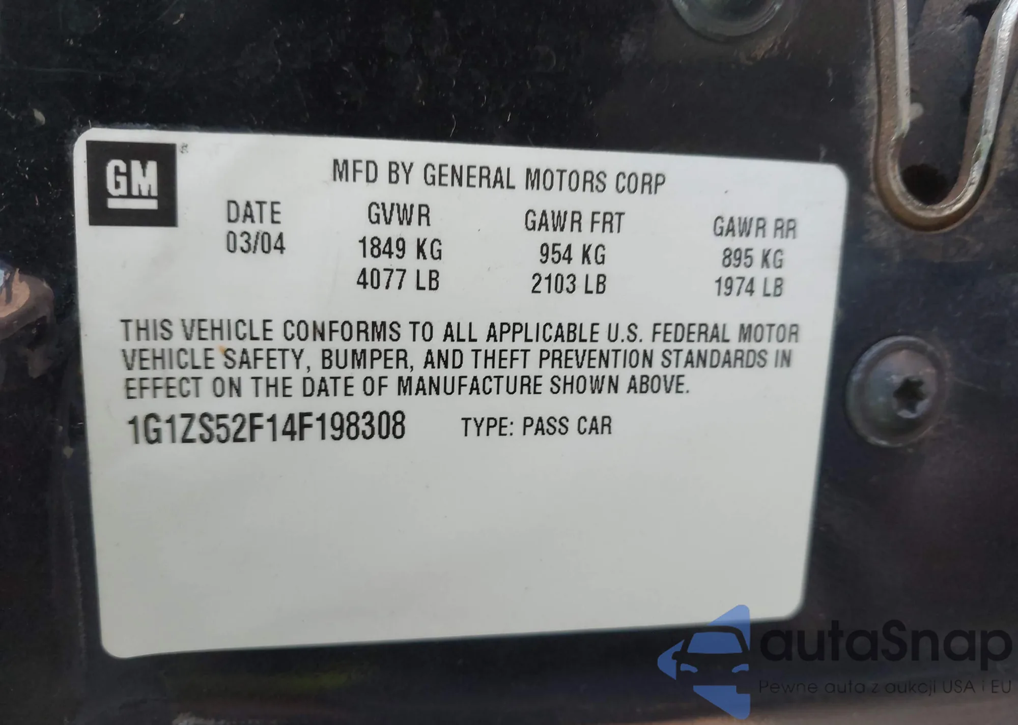 • VIN 1G1ZS52F14F198308