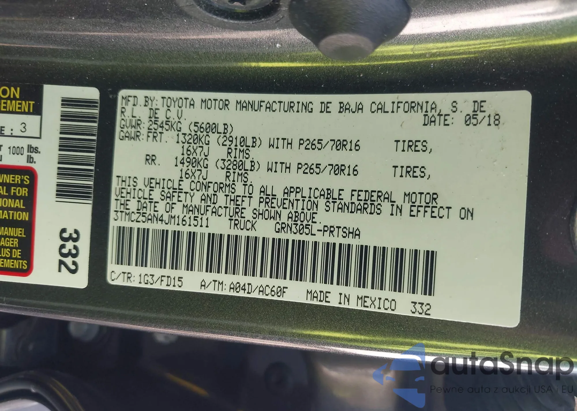 • VIN 3TMCZ5AN4JM161511
