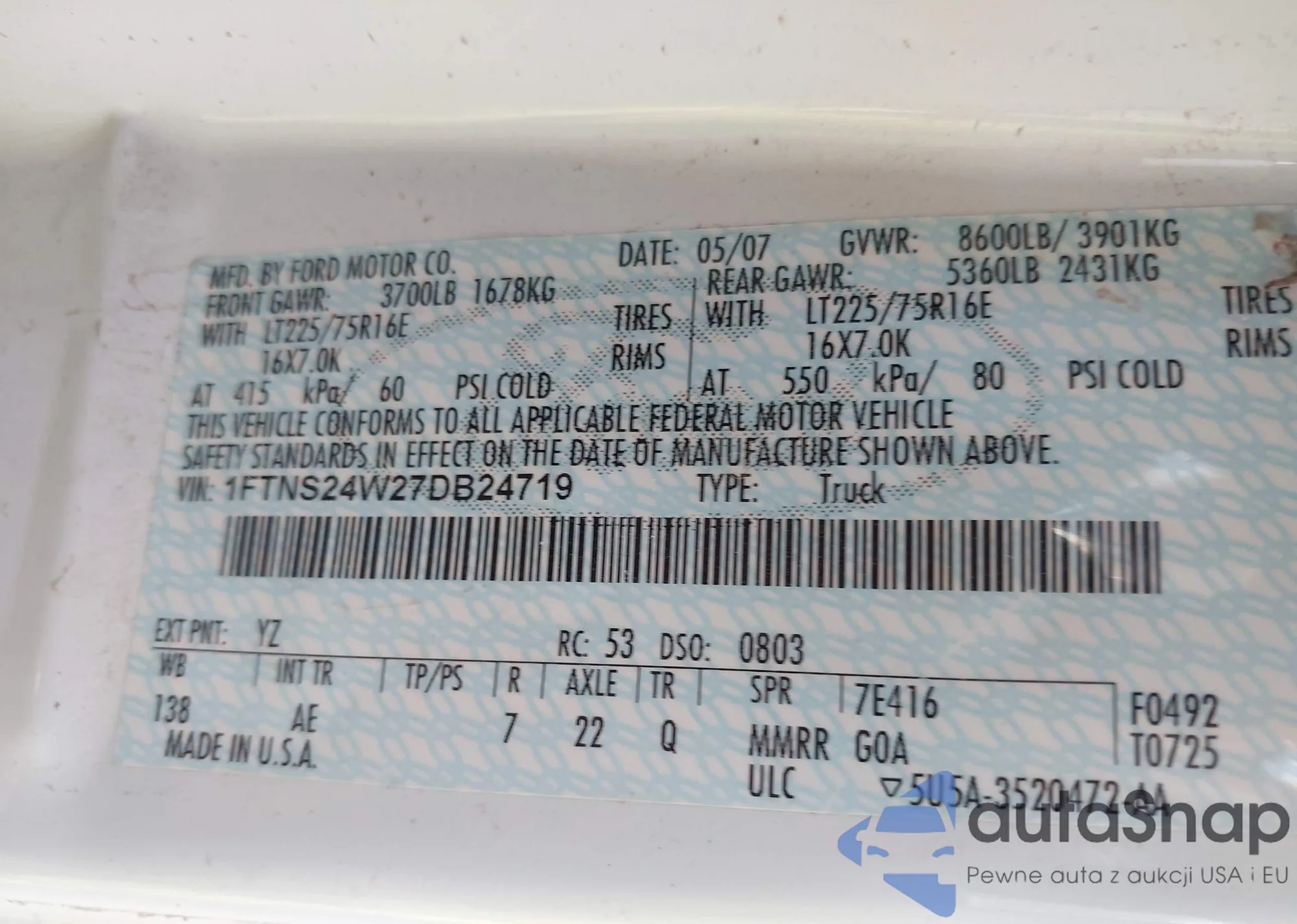 LOT: 43679419 VIN: WDBUF70J53A387577