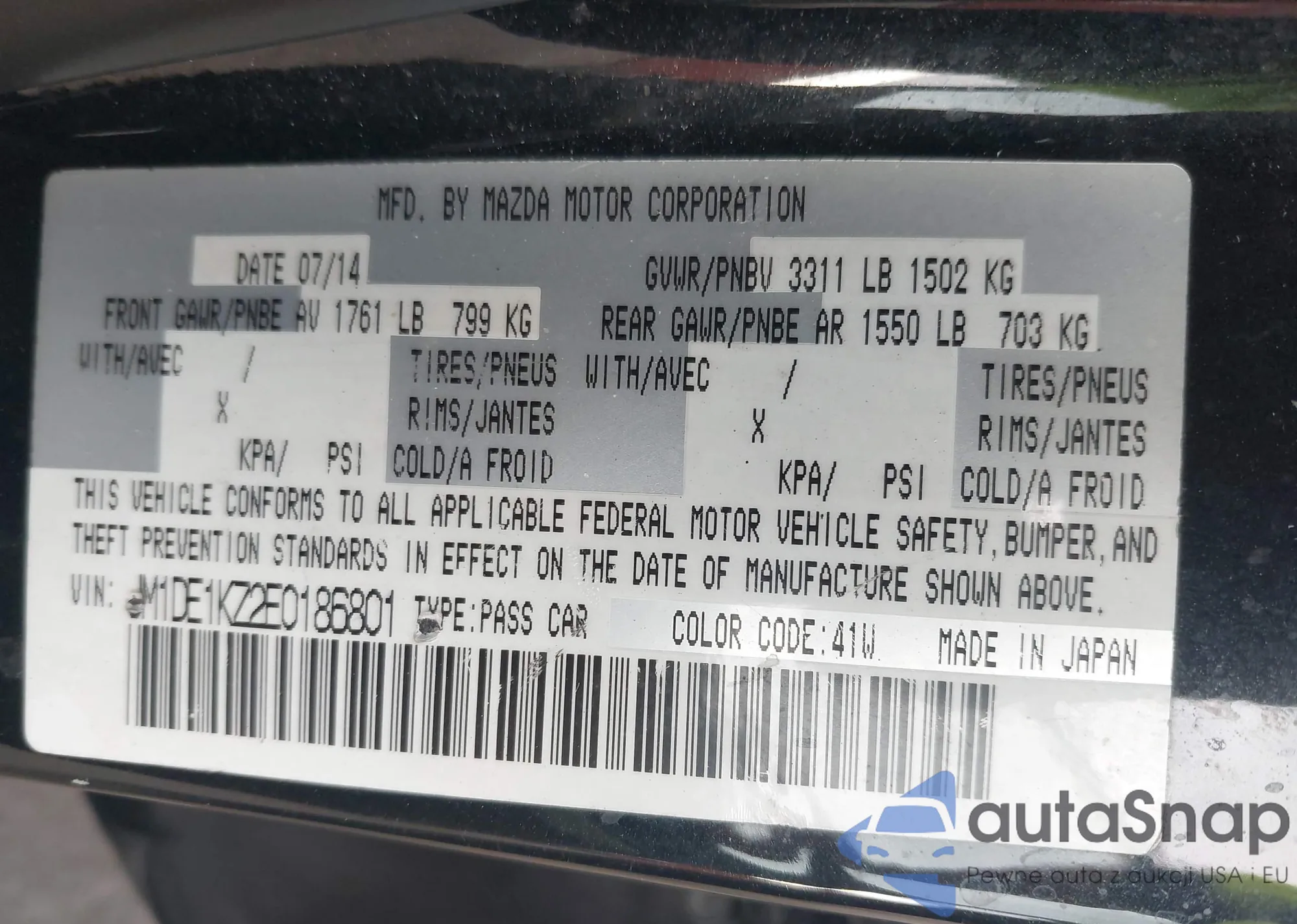 LOT: 43682305 VIN: JM1DE1KZ2E0186801
