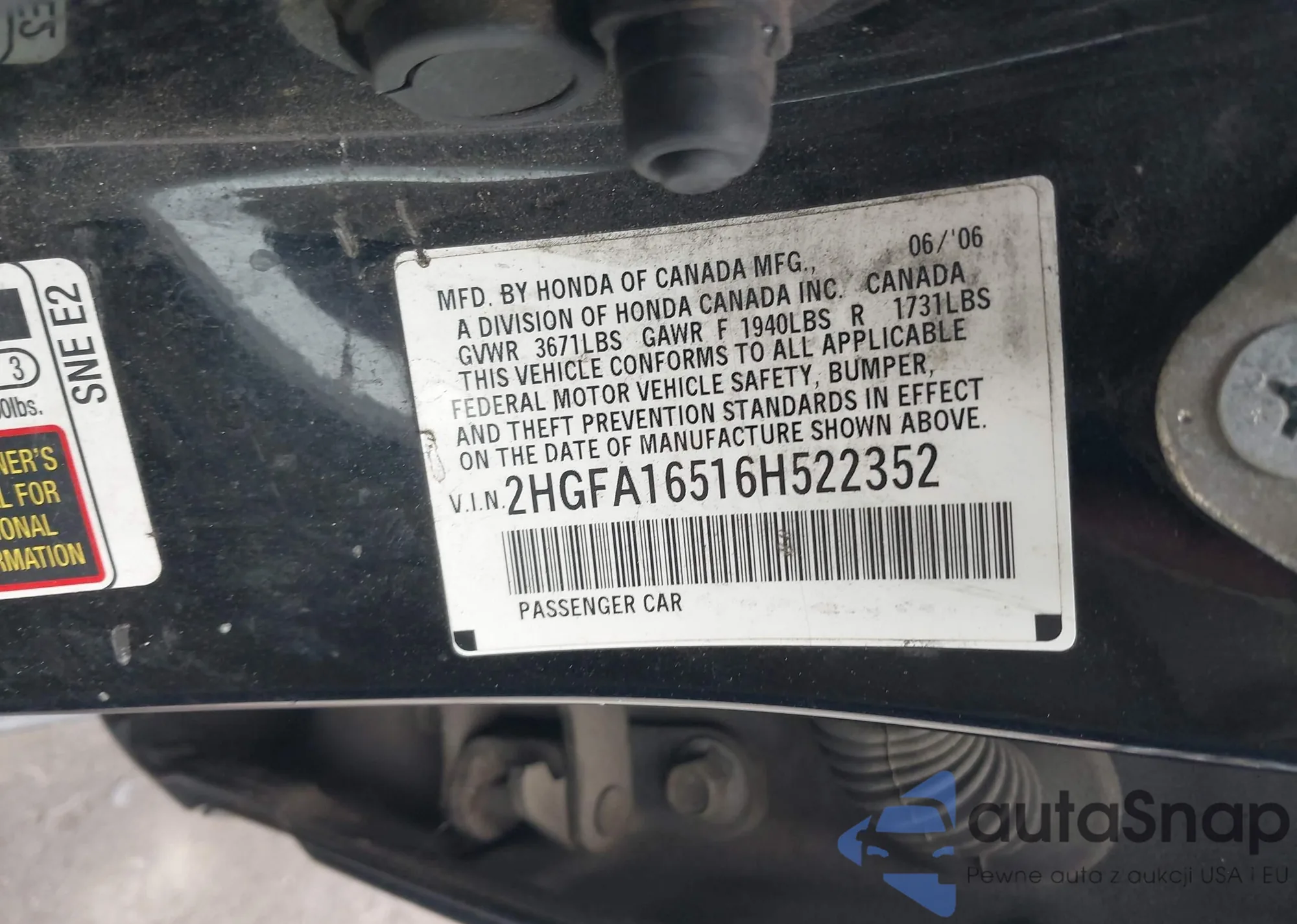 • VIN 2HGFA16516H522352