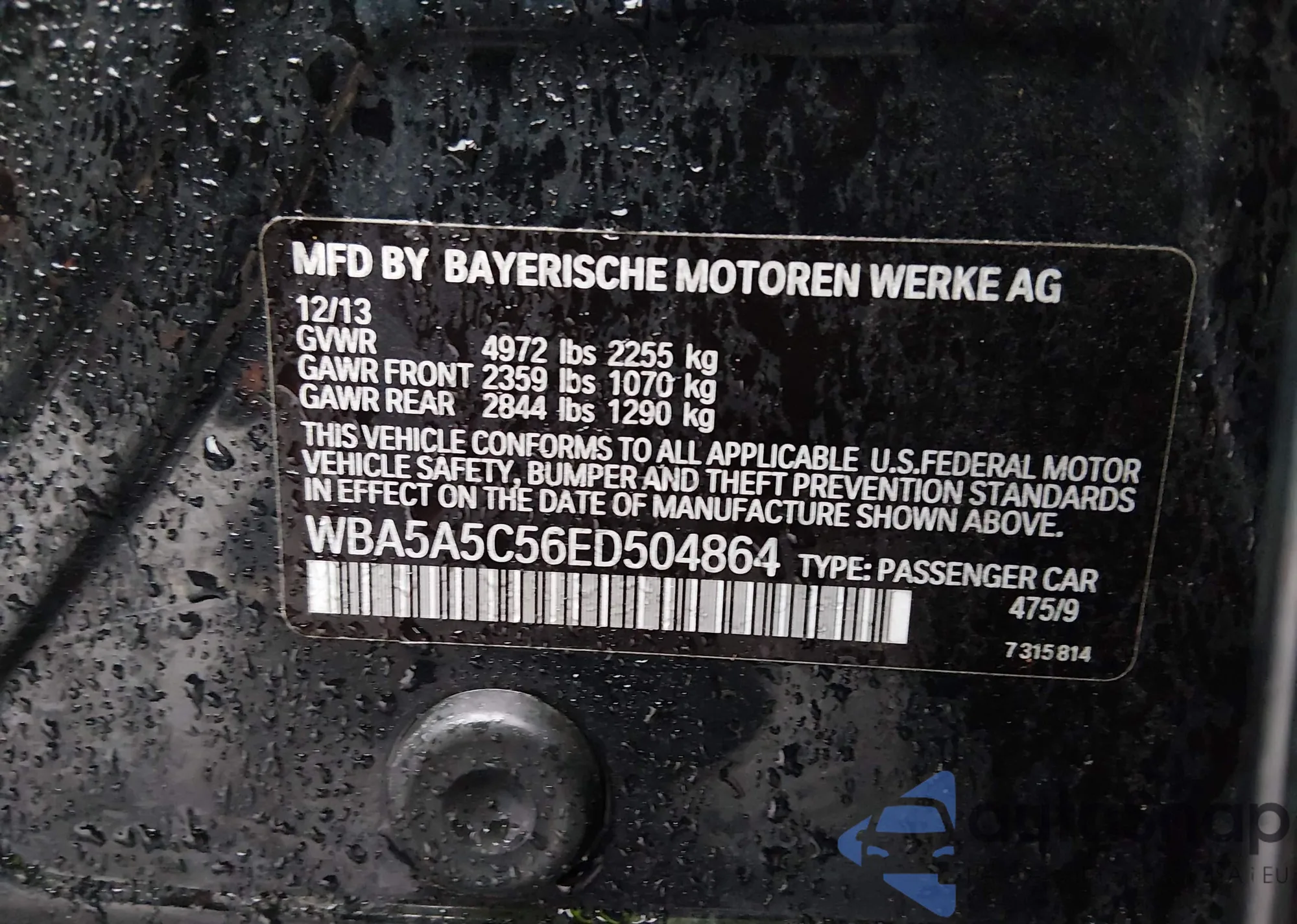 • VIN WBA5A5C56ED504864