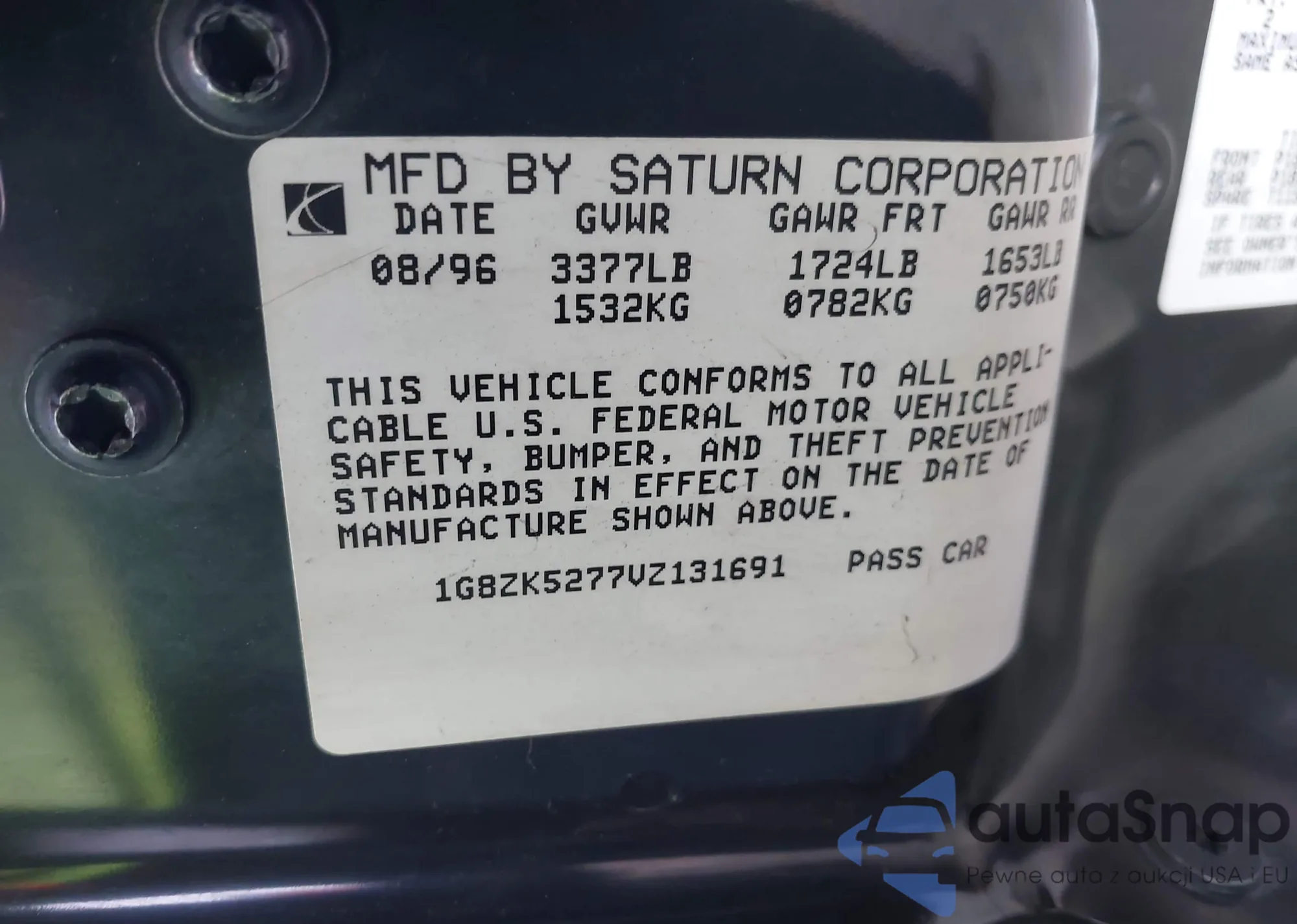 • VIN 1G8ZK5277VZ131691