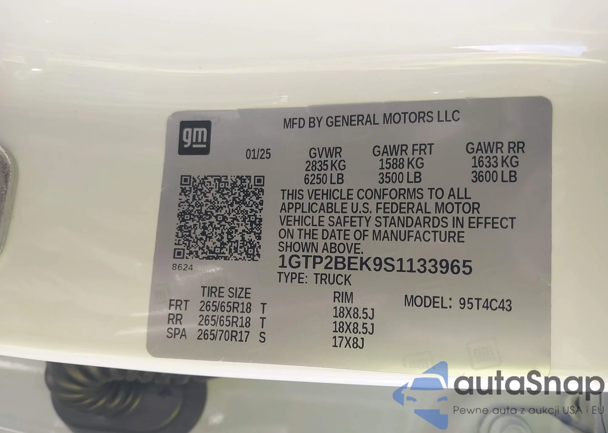 • VIN 1GTP2BEK9S1133965