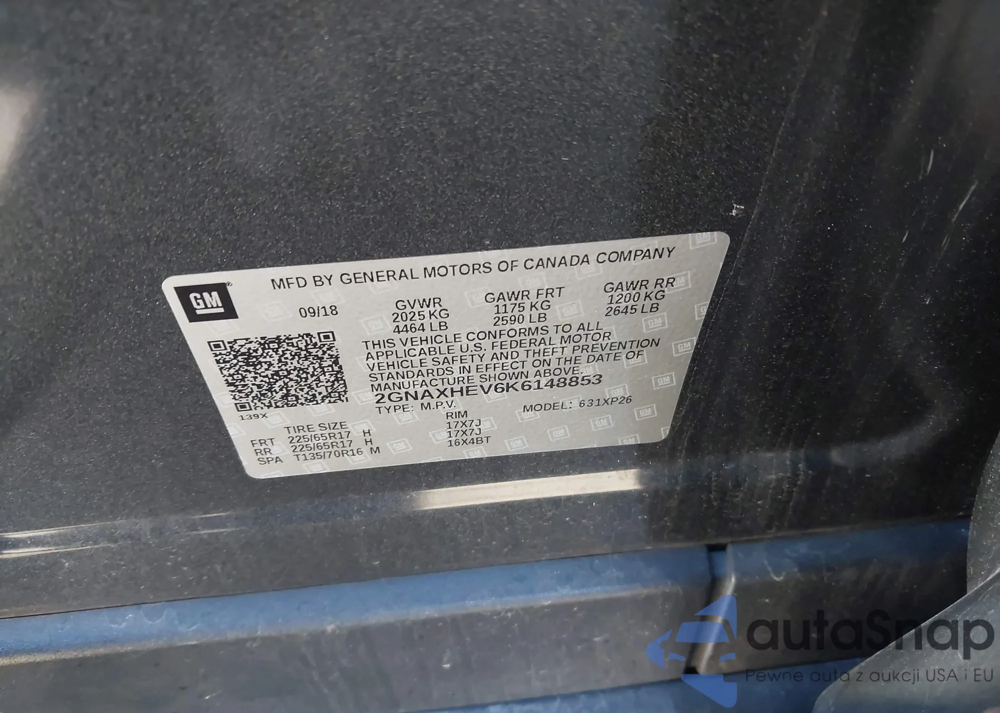 • VIN 2GNAXHEV6K6148853