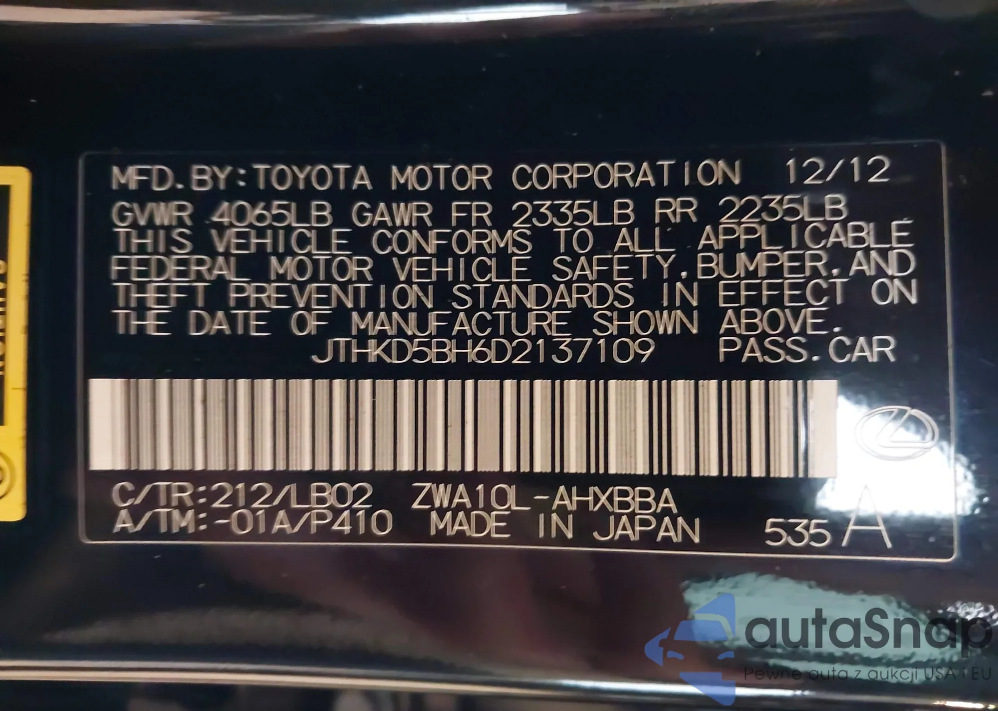 • VIN JTHKD5BH6D2137109