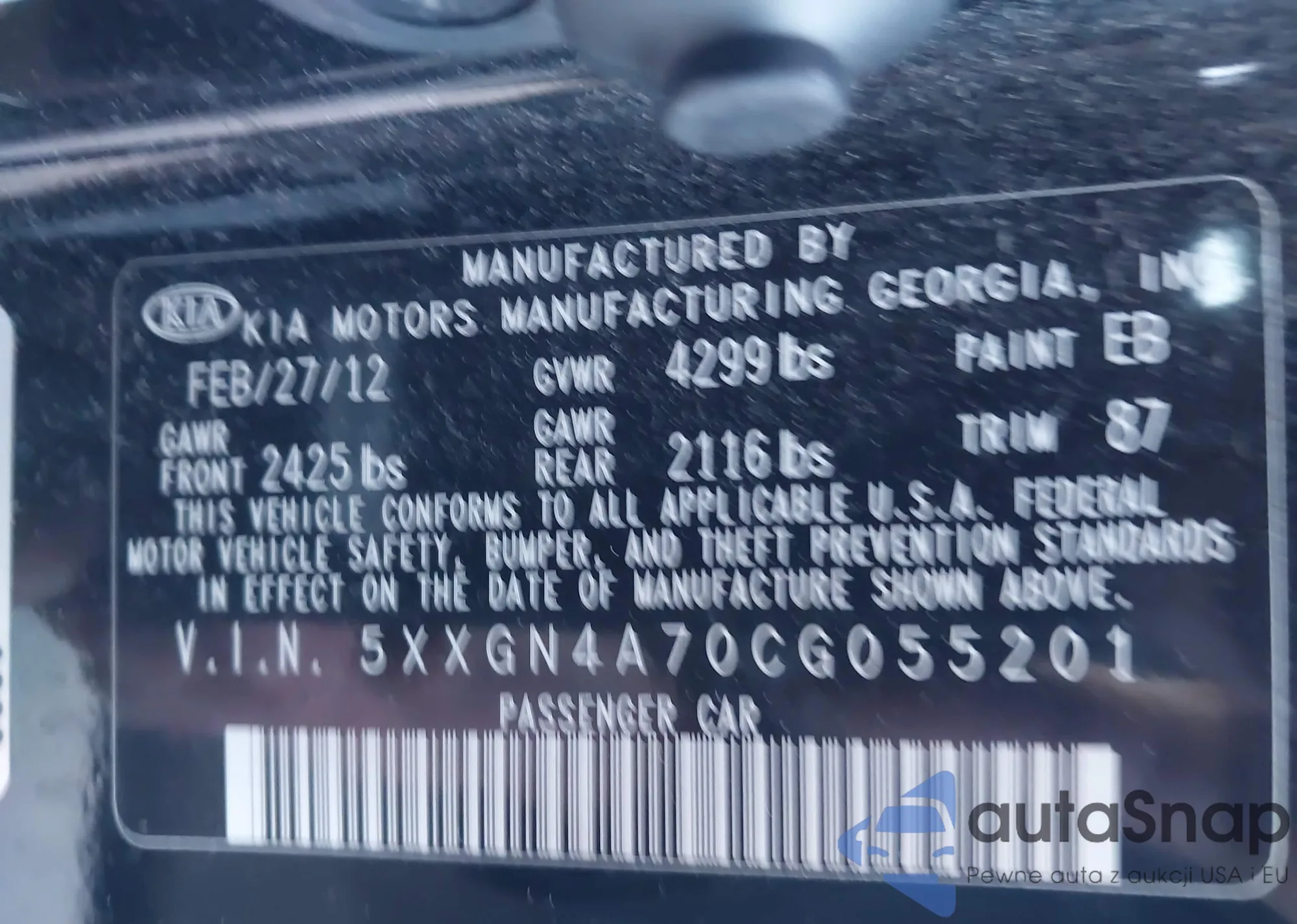 LOT: 43781571 VIN: 5XXGN4A70CG055201