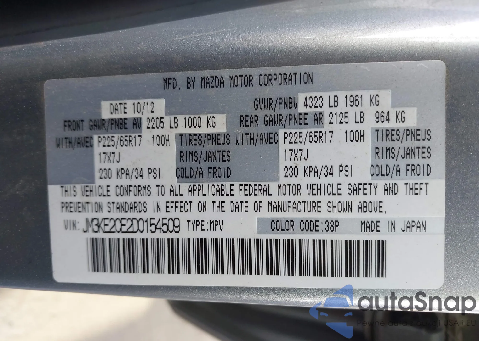 LOT: 43949539 VIN: JM3KE2CE2D0154509
