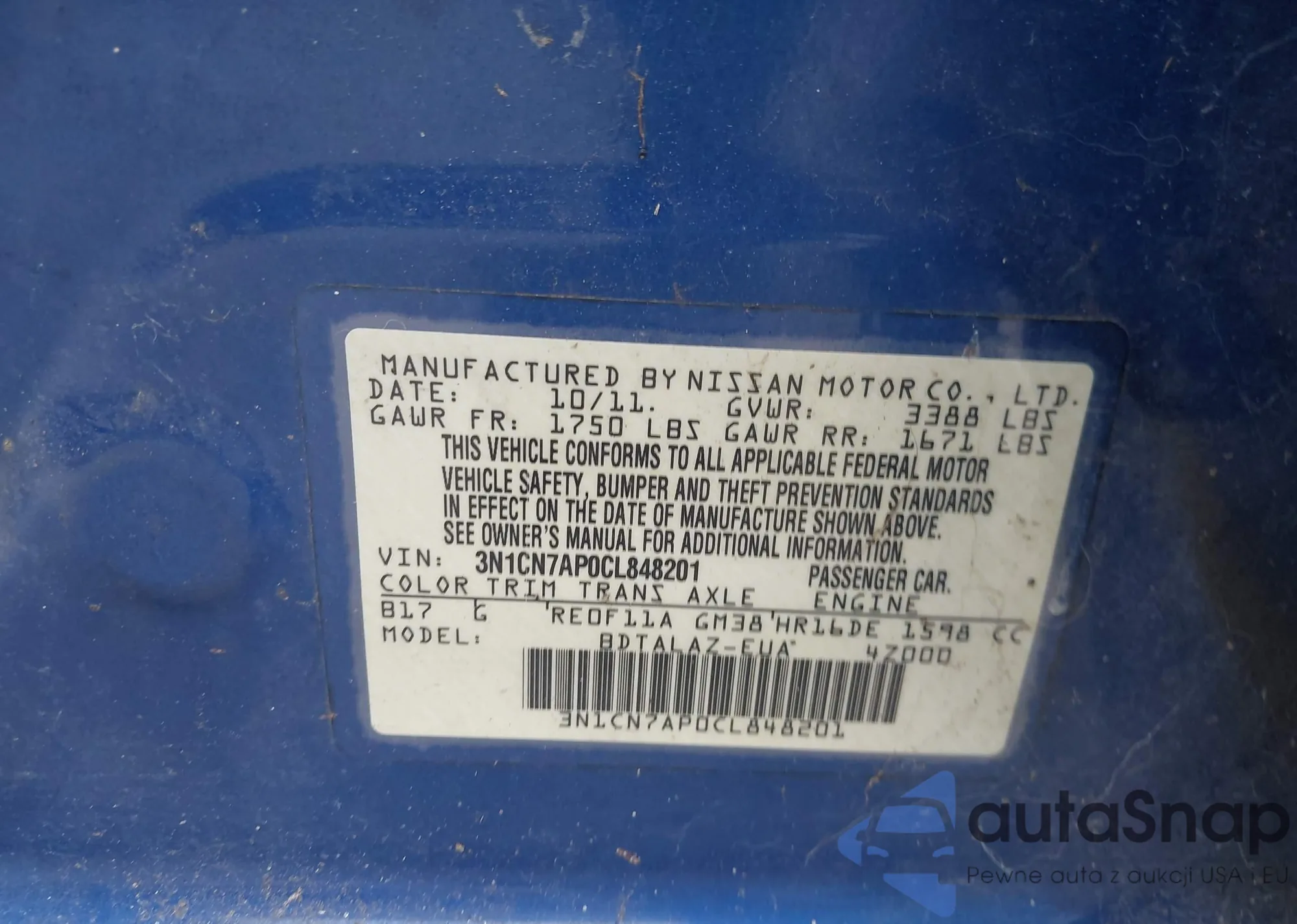 • VIN 3N1CN7AP0CL848201