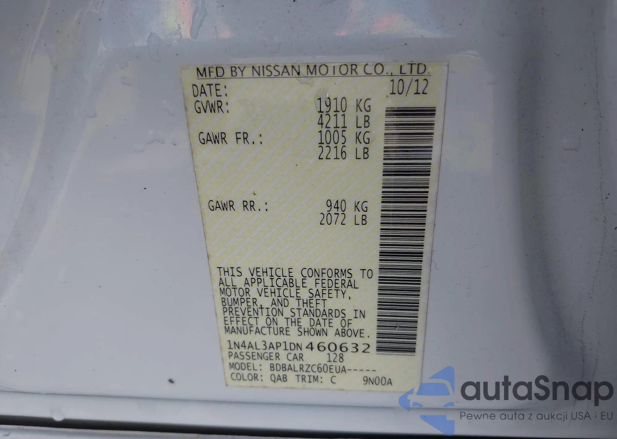 LOT: 42271960 VIN: 1N4AL3AP1DN460632