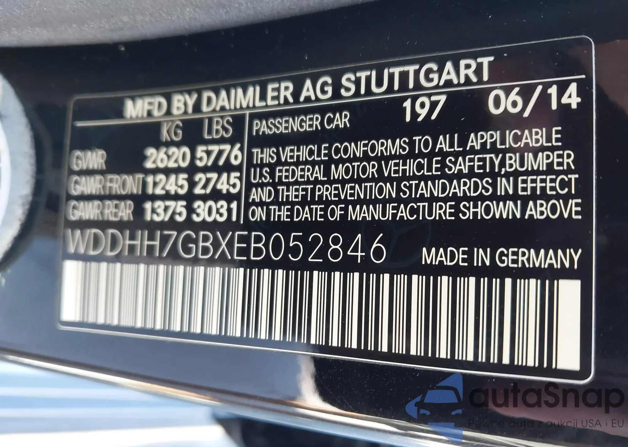 • VIN WDDHH7GBXEB052846