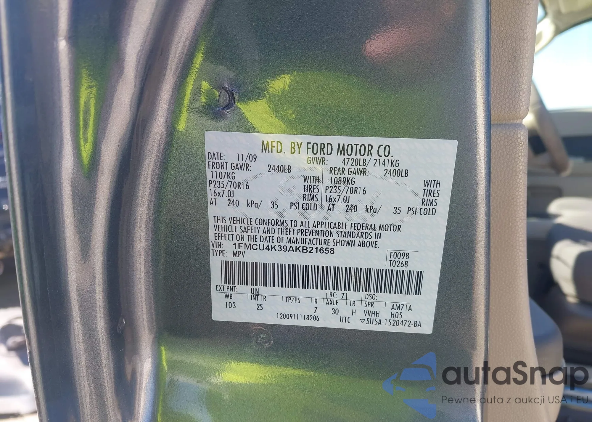 • VIN 1FMCU4K39AKB21658