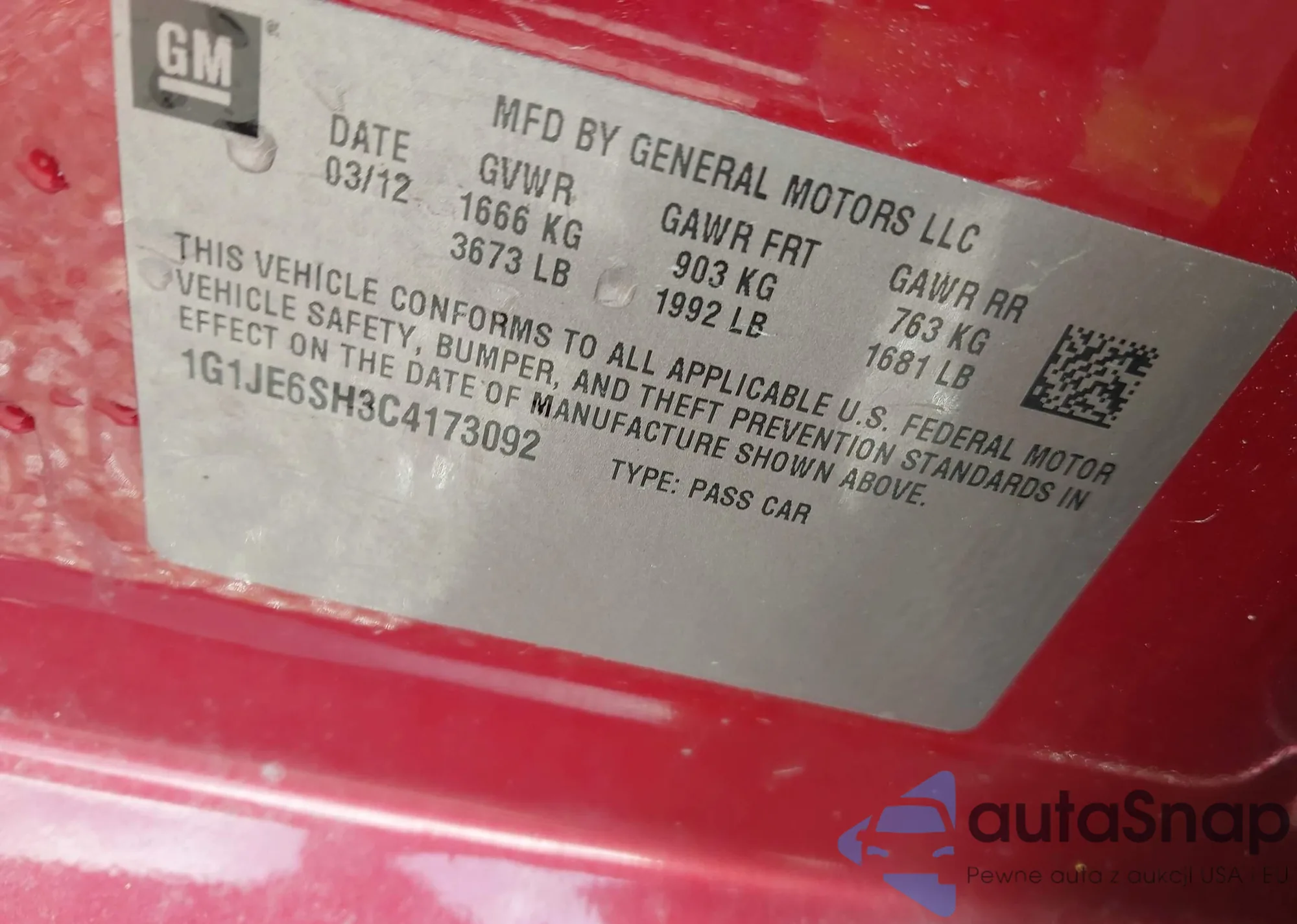 • VIN 1G1JE6SH3C4173092