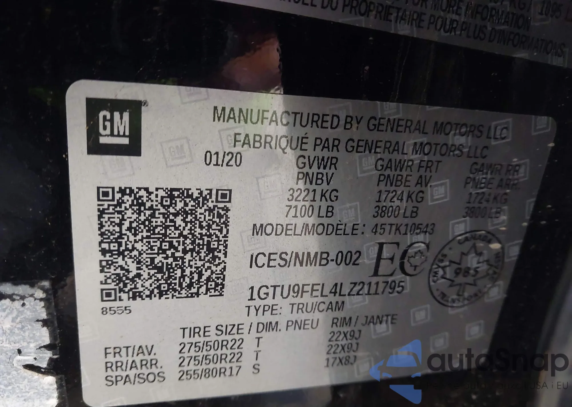 • VIN 3GNKBCRS0MS505759