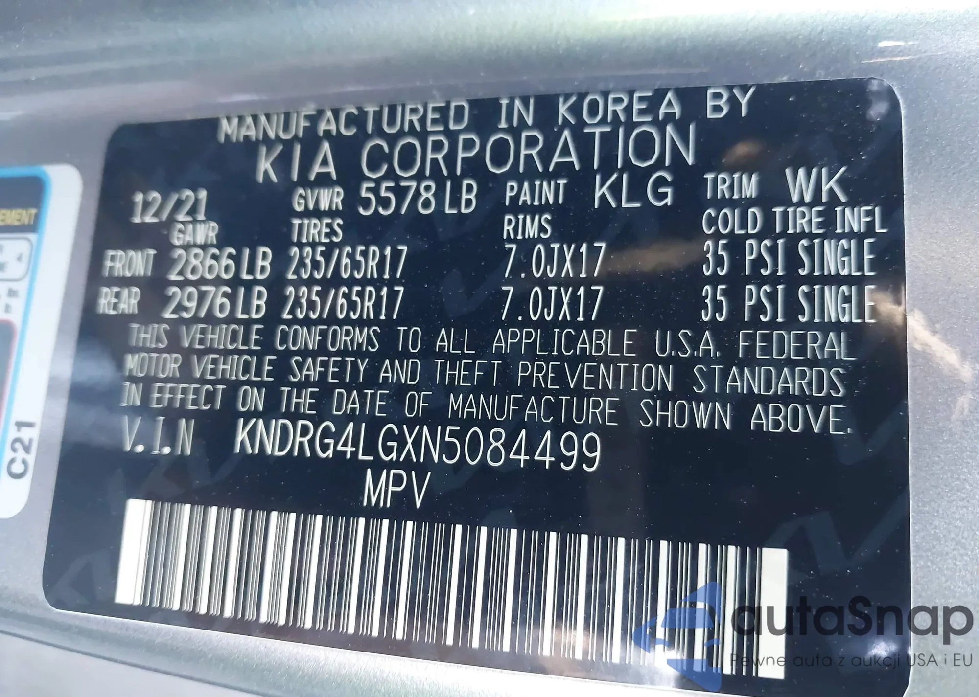 LOT: 43450503 VIN: KNDJN2A22K7015613