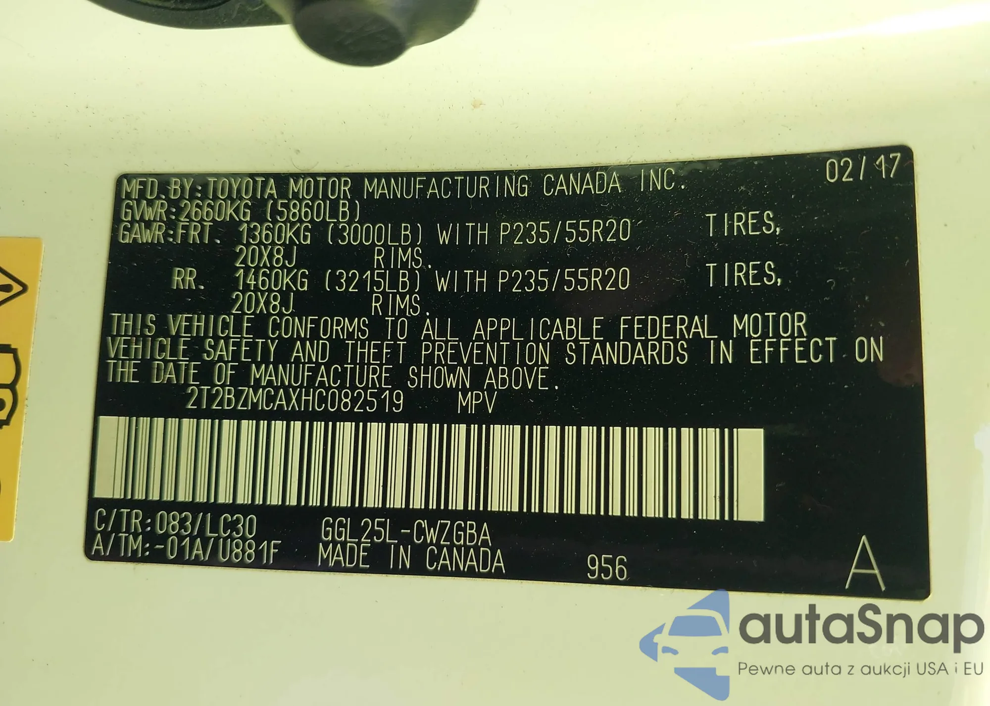 • VIN 2T2BZMCAXHC082519