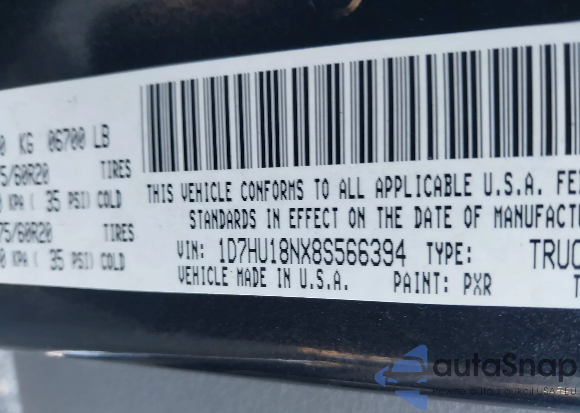 • VIN 1D7HU18NX8S566394