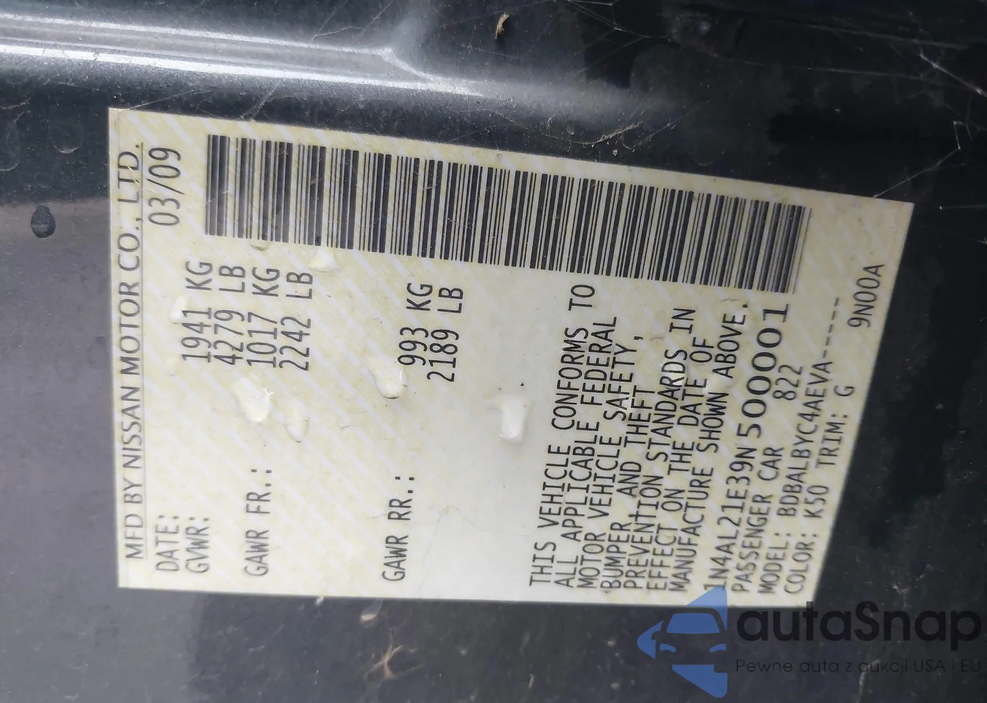 LOT: 43966131 VIN: 1N4AL21E39N500001