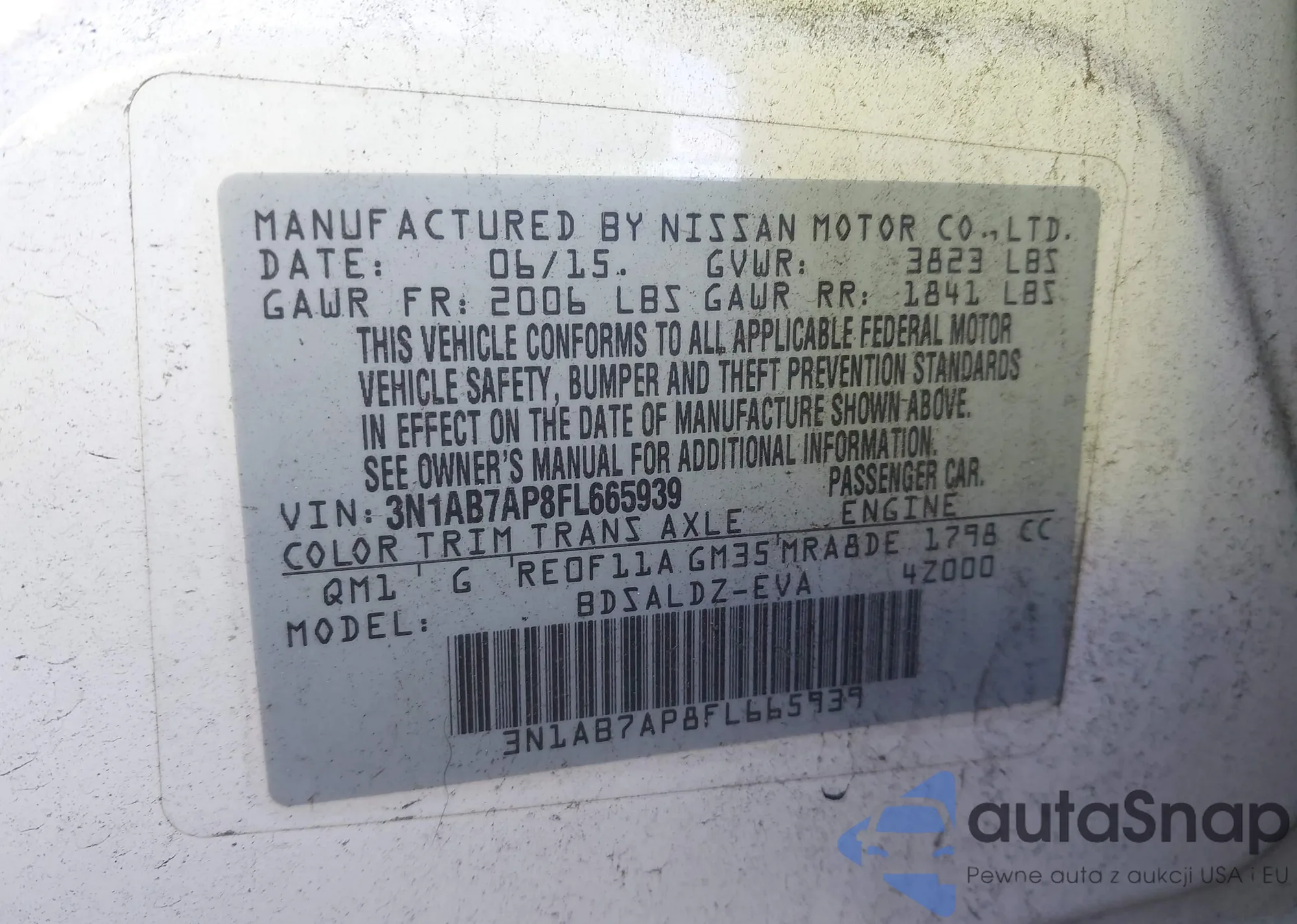 • VIN 3N1AB7AP8FL665939