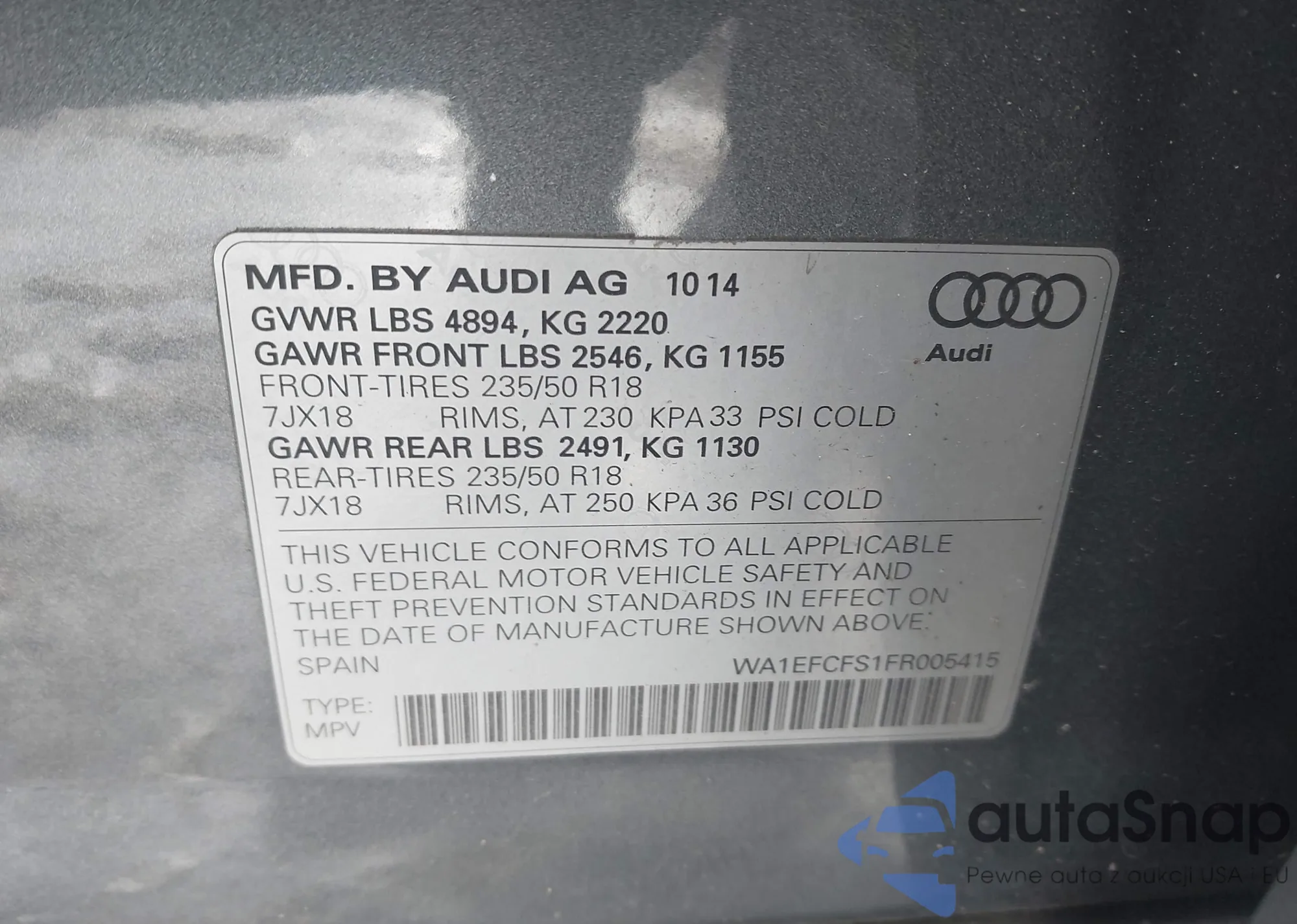 LOT: 44021705 VIN: WA1EFCFS1FR005415