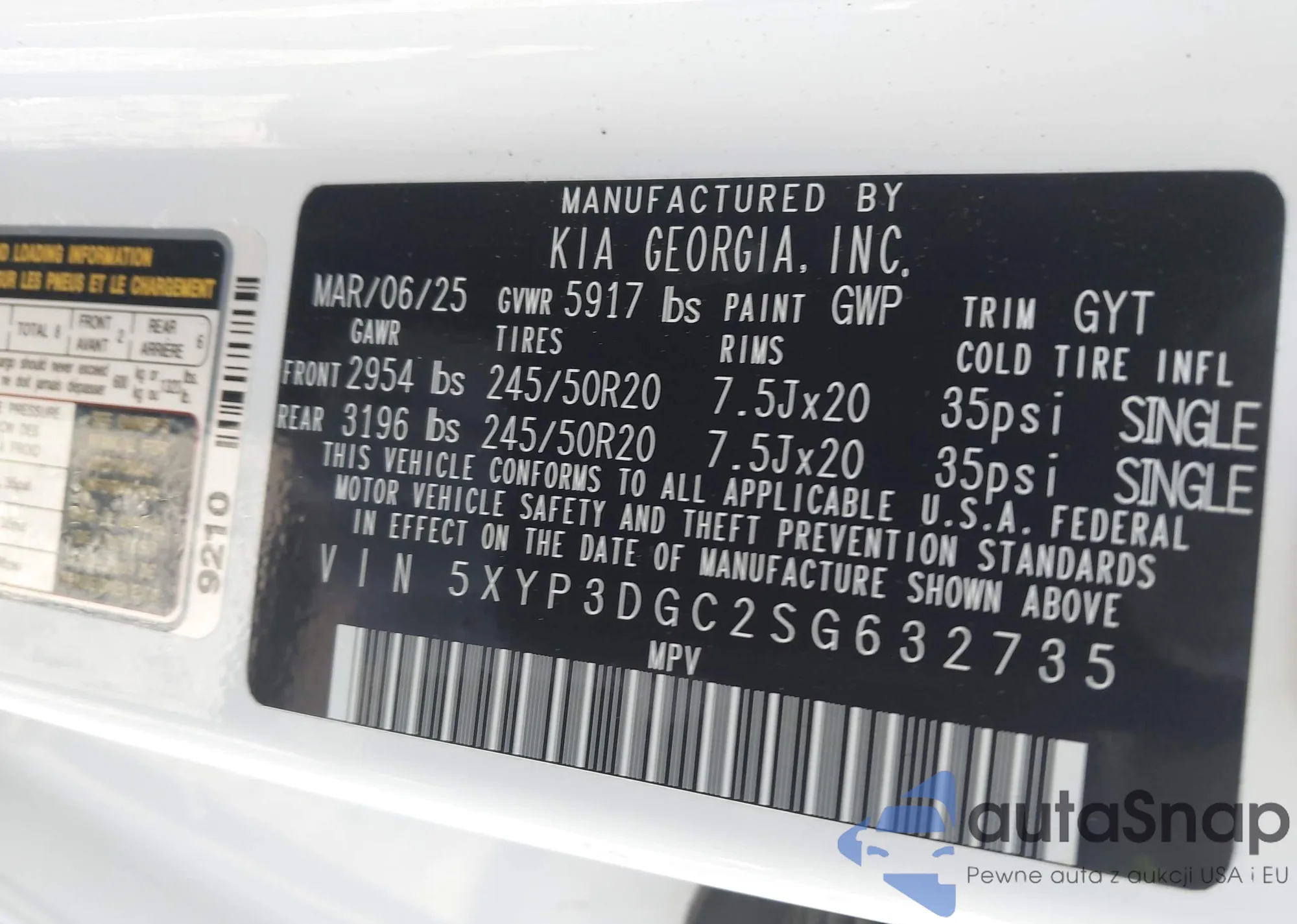 • VIN 5XYP3DGC2SG632735